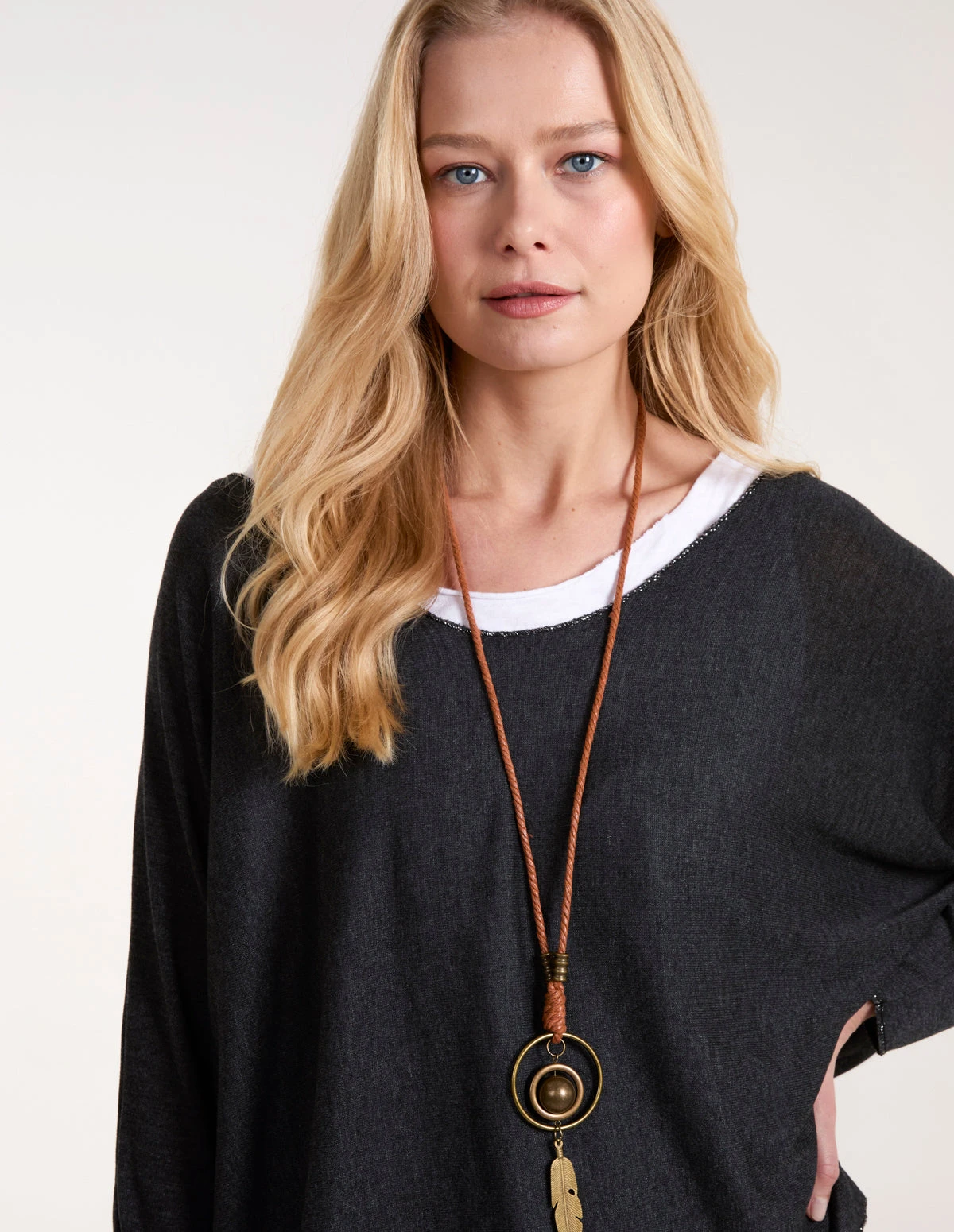 Go comfy with this 2 in 1 layered top. With its oversized fit and batwing sleeves it’s all you need to look great without any effort! Can be worn to work, usual school runs and even accessorised for an evening out with boots.