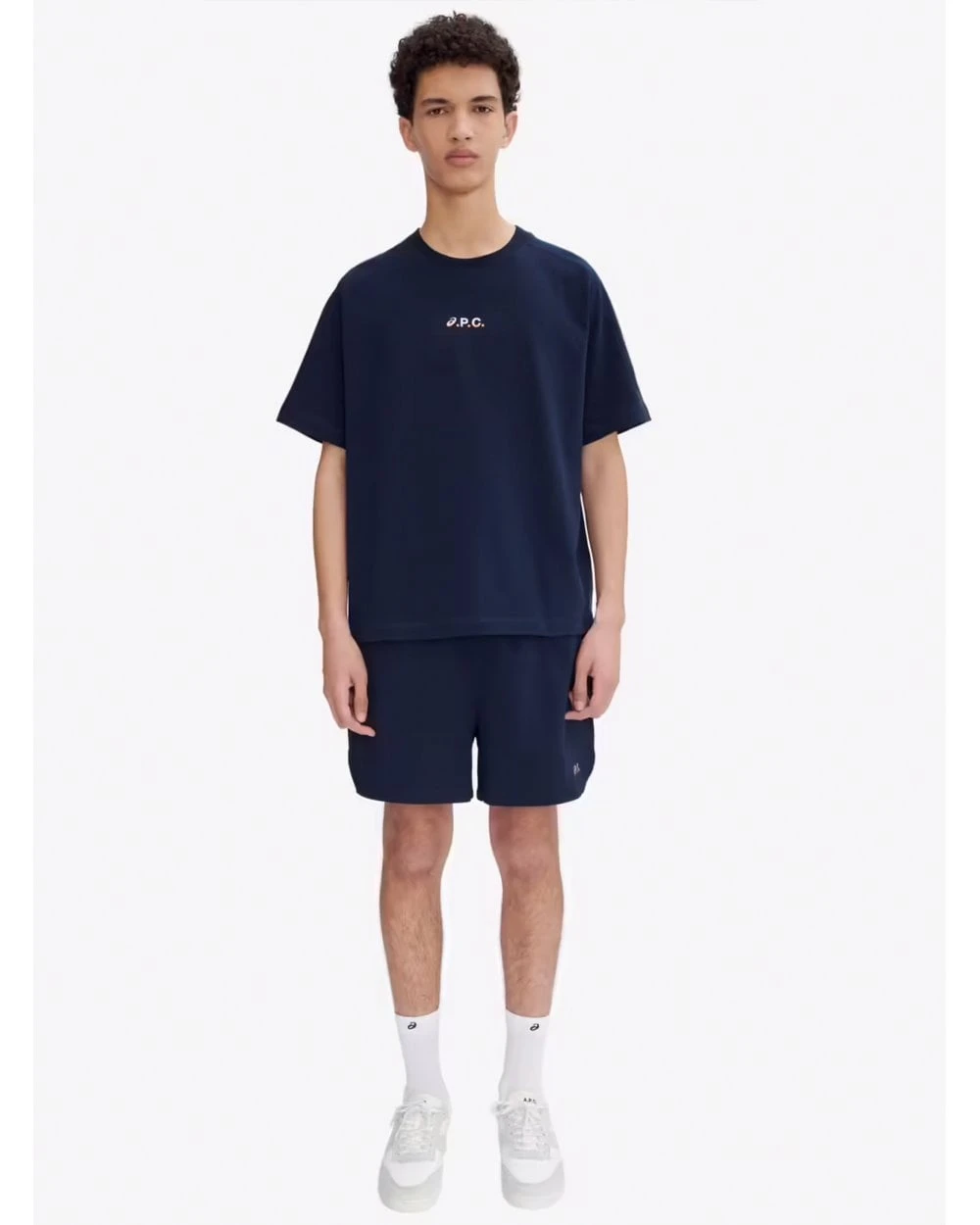 - A.P.C. Asics collaboration branding on the lower left leg