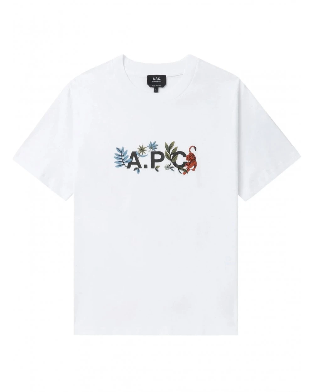 - A.P.C. letter logo print with leaves and tiger on the front