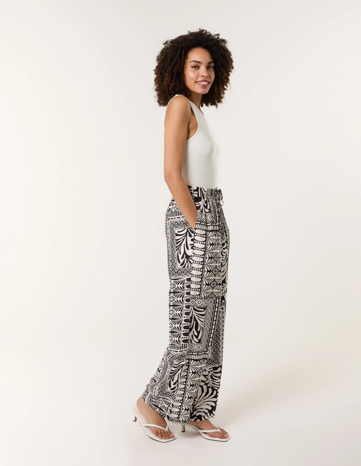 Add a vibrant tropical print to your holiday wardrobe with these easy wearing flared printed linen trousers. Team with a basic tee and sandals.