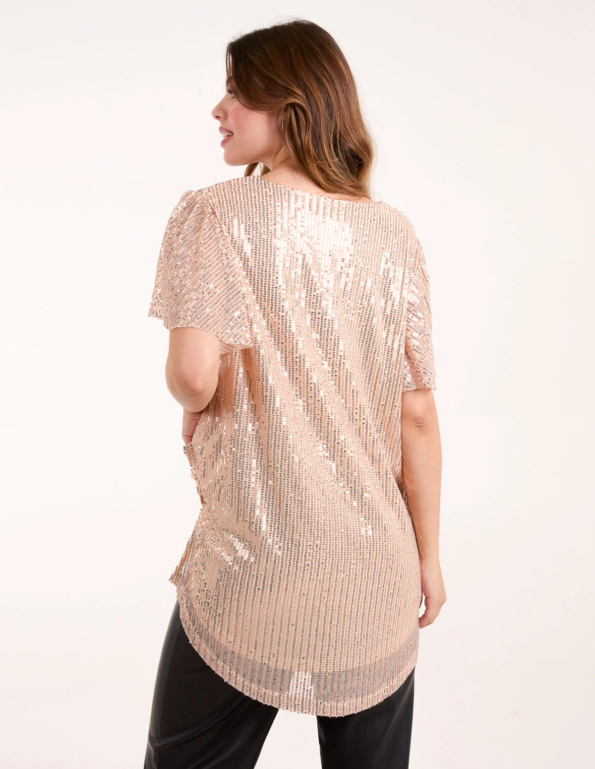 Sparkle your way into the party season wearing this sequin top! Team this with your favourite jeans, or high waist faux leather skirt for the perfect formal look this party season!
