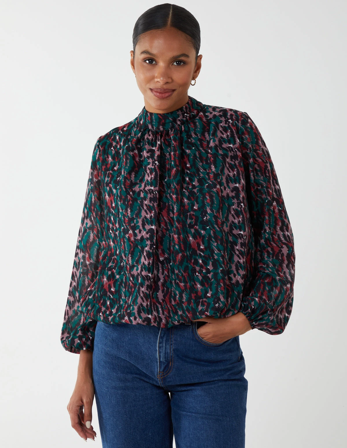 Prints are a fashion feature that will never go out of style. That is why you should add the Animal Print Blouson Top to your closet. Colourful, with a mesh layer, this high neck top has a front row seat when picking an out outfit for a night out your girlfriends! Style with white trousers and black stilettos.