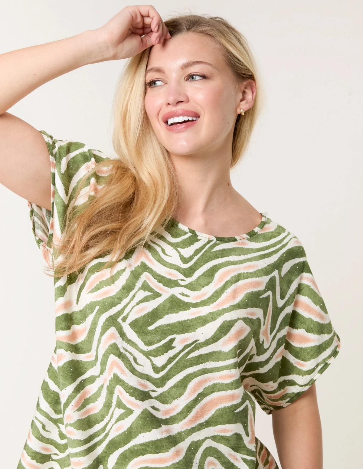 Add some sparkle to your t-shirt collection this SS. Our abstract diamante top will add a touch of style teamed with chinos and pumps.