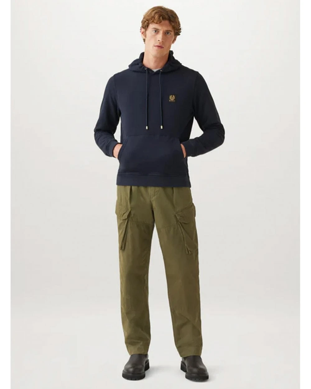 - Belstaff Mens Patch Logo Hoodie Dark Ink Navy