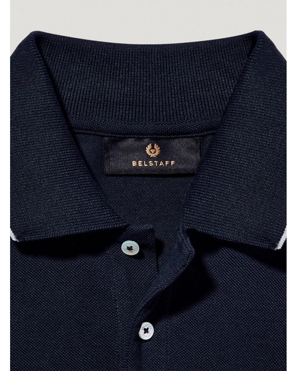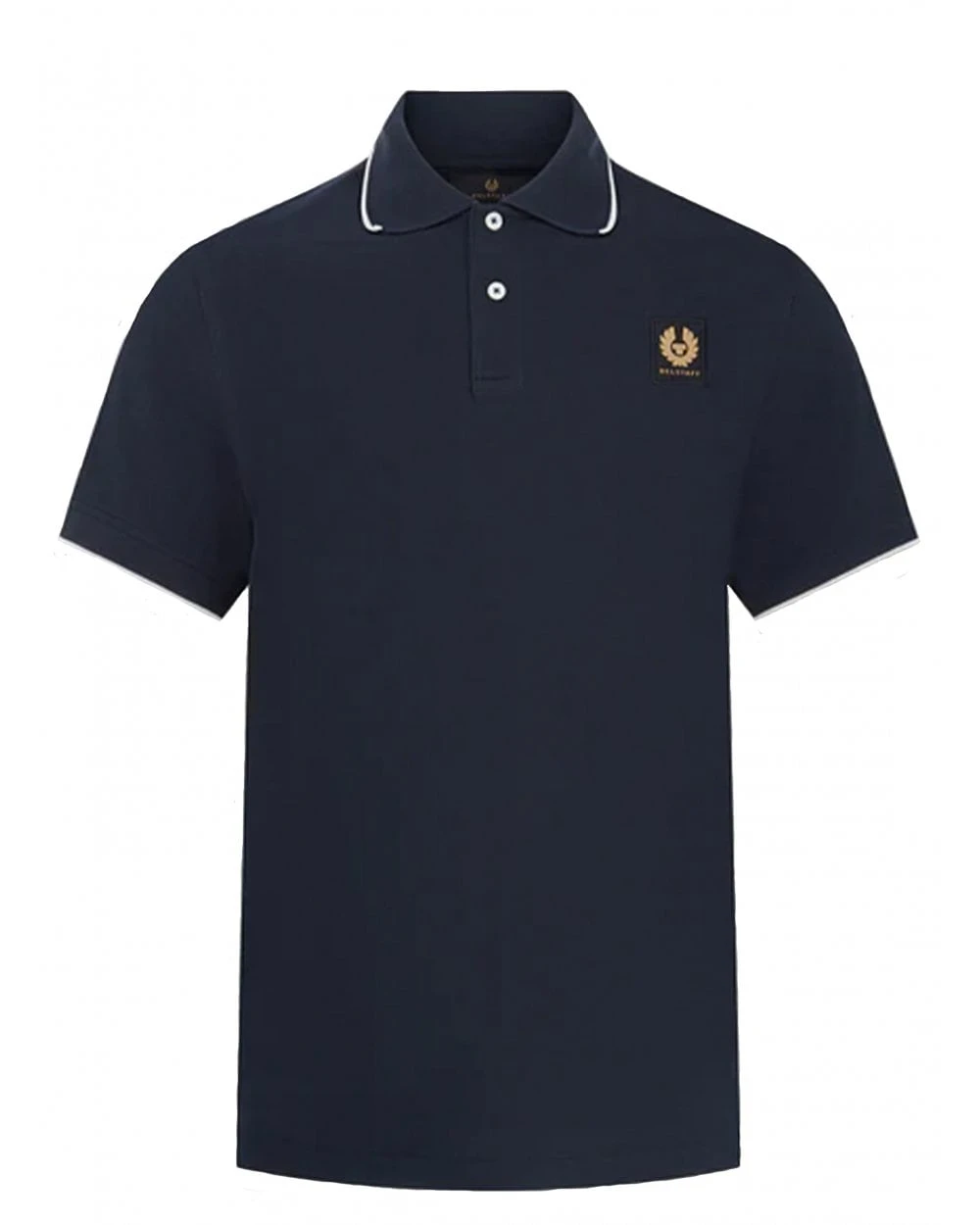 - Belstaff Mens Patch Logo Tipped Polo Shirt Dark Ink Navy