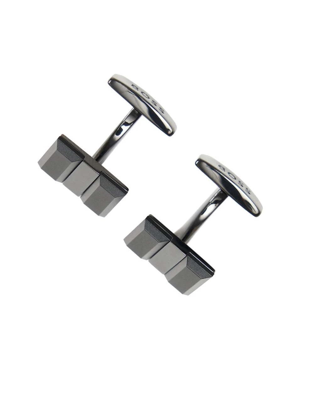 BOSS Mens Adam Black Emed Logo Cufflinks