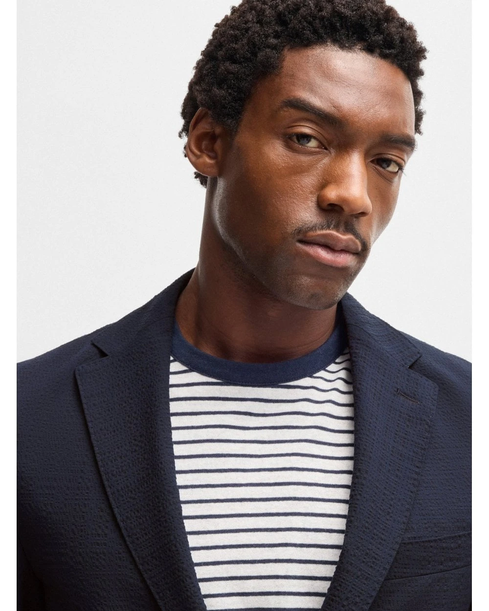 - Boss Mens C-Hanry 252 Seersucker Blazer Jacket Dark Blue
