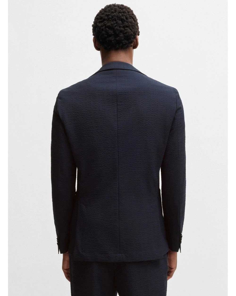 BOSS Mens C-Hanry 252 Seersucker Blazer Jacket Dark Blue