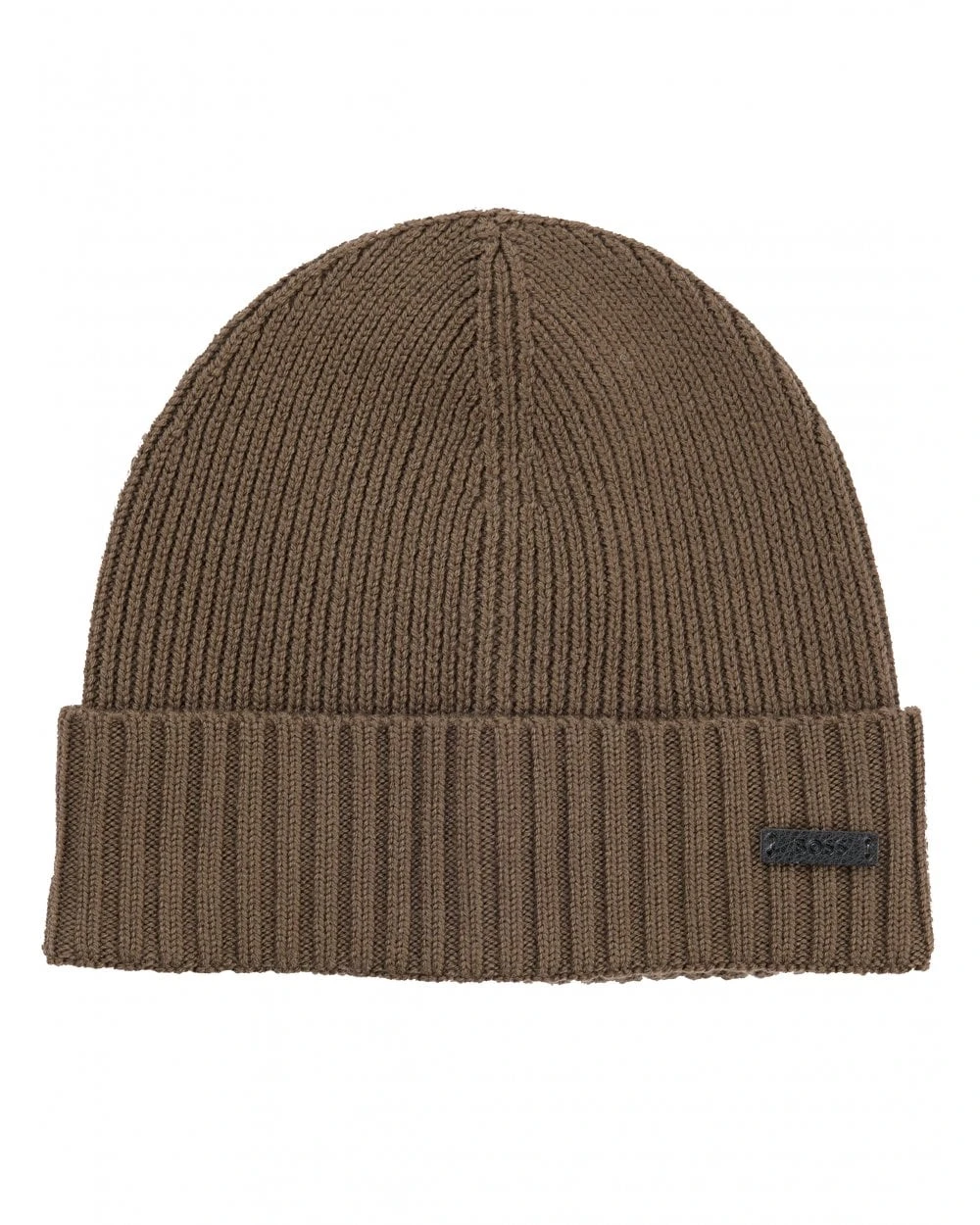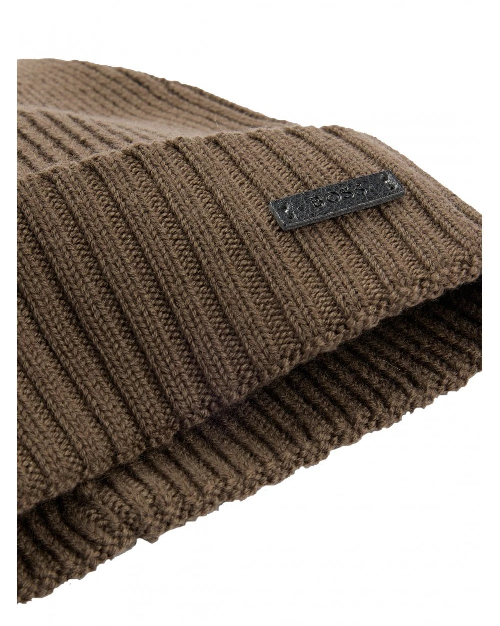 - Boss Mens Fati Ribbed Beanie Hat Khaki Green