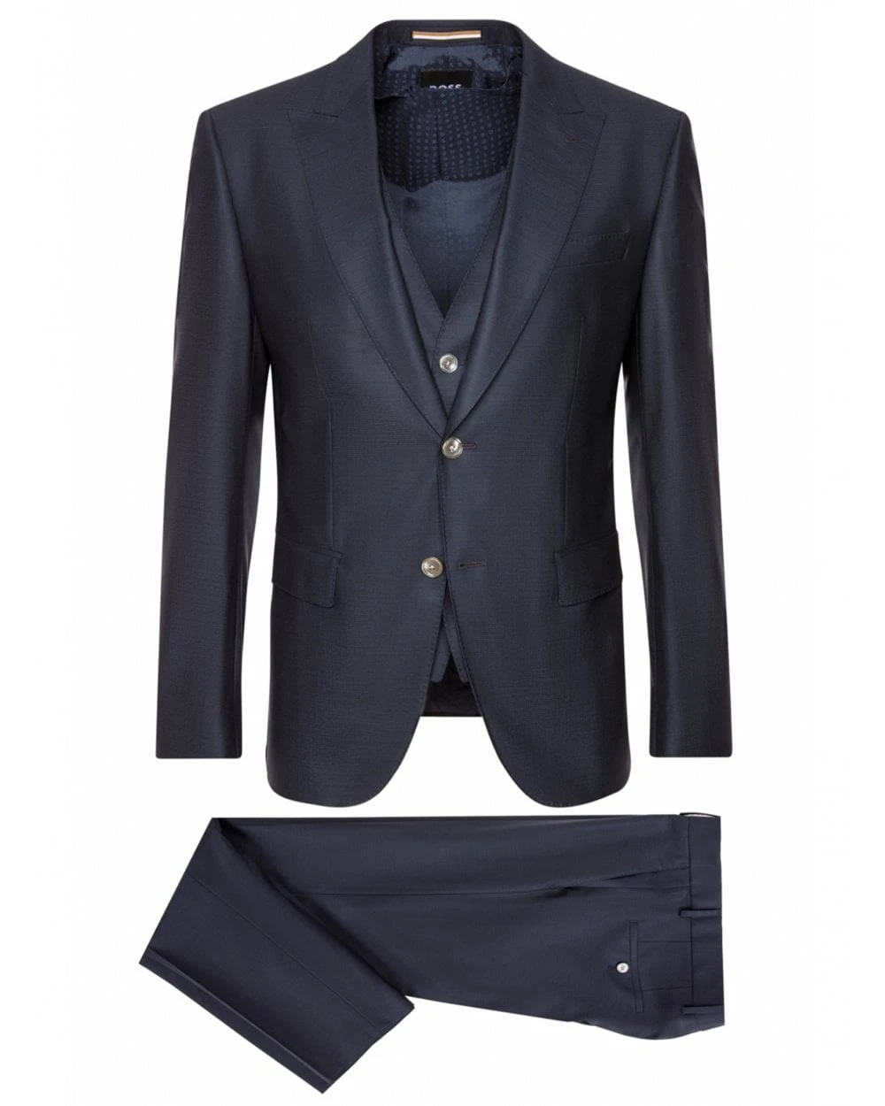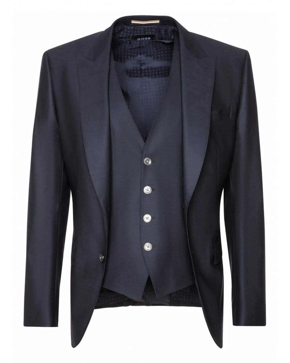 - BOSSÂ Mens H-Huge Dark Blue Three-Piece Peak Lapel Suit