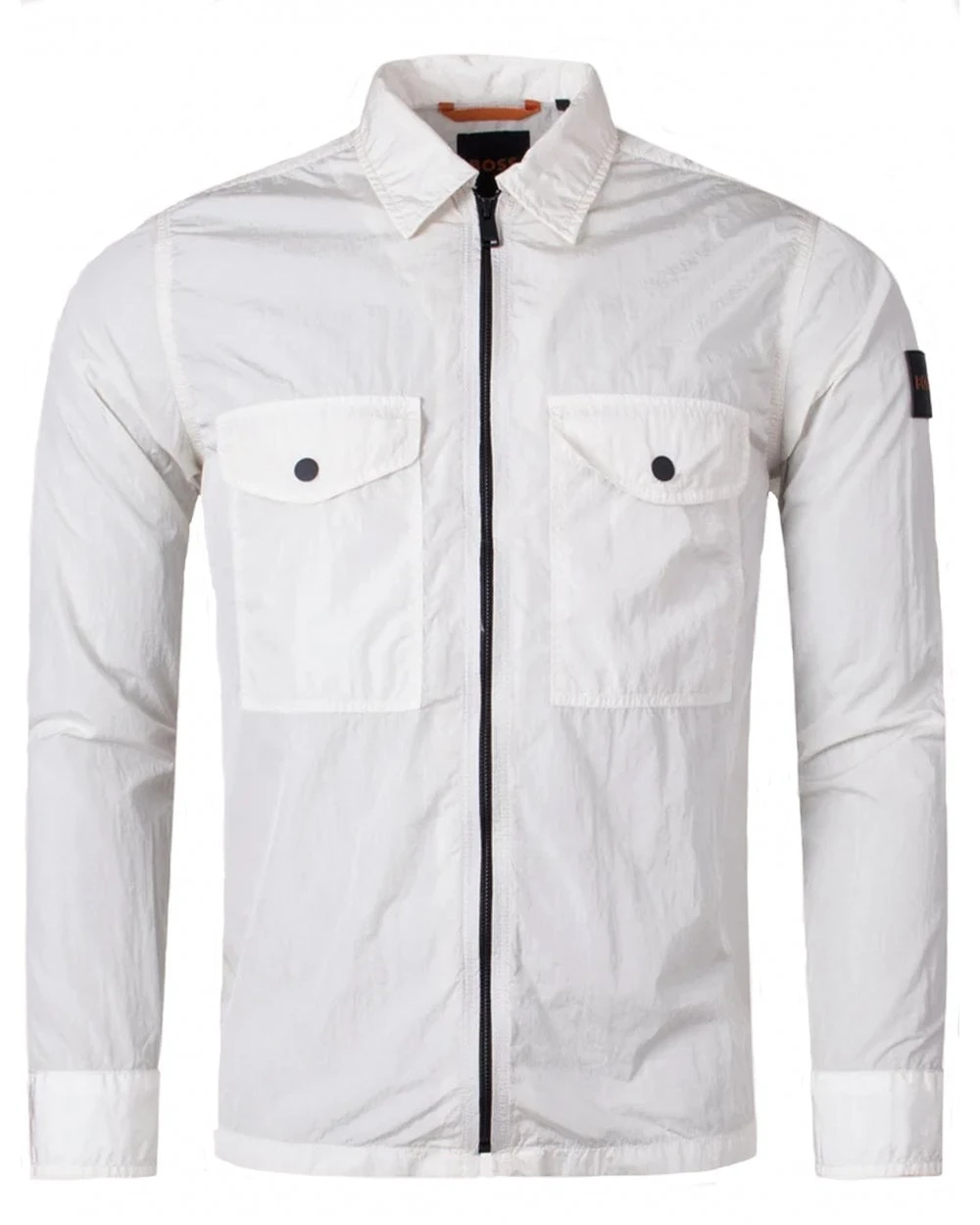 - BOSSÂ Mens Lovel Crinkle Effect Zip Overshirt, Open White Jacket