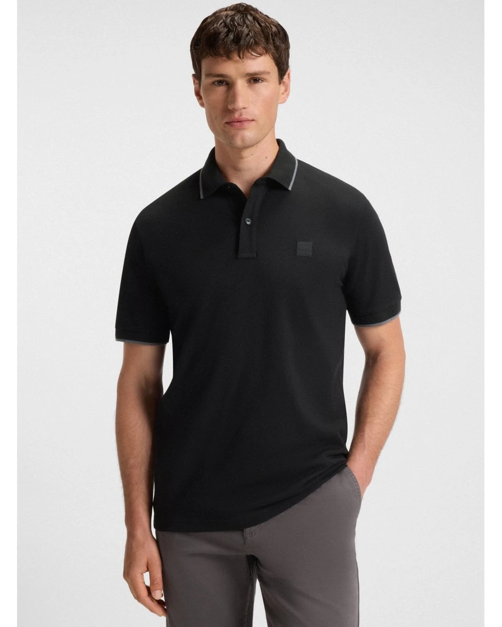 - Boss Mens Passertip Pique Tipped Polo Shirt Black