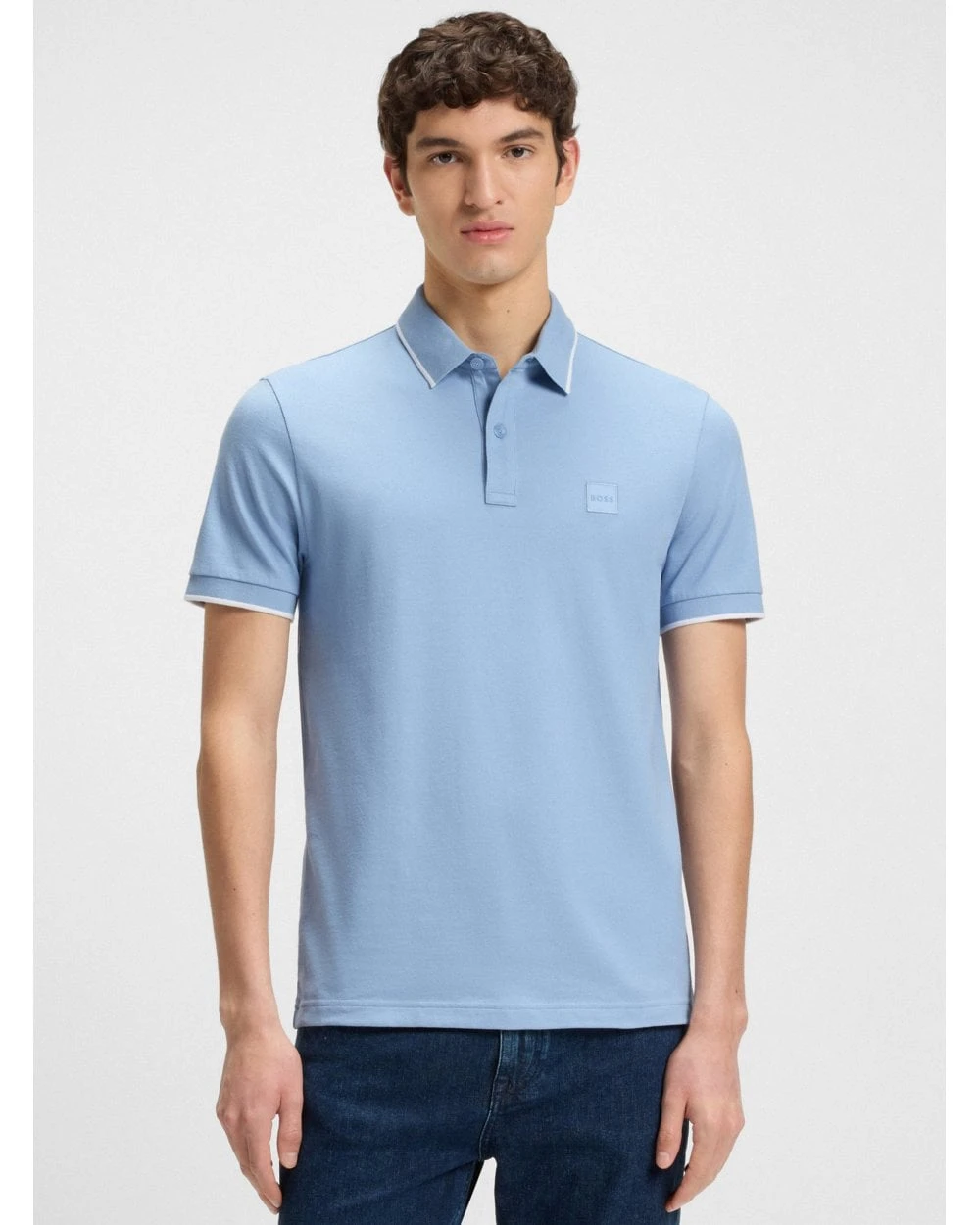 BOSS Mens PasserTip Polo Shirt Light Blue