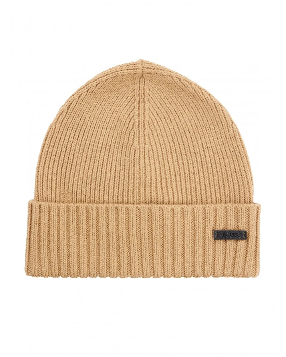 BOSS Mens Ribbed Beanie Med Beige