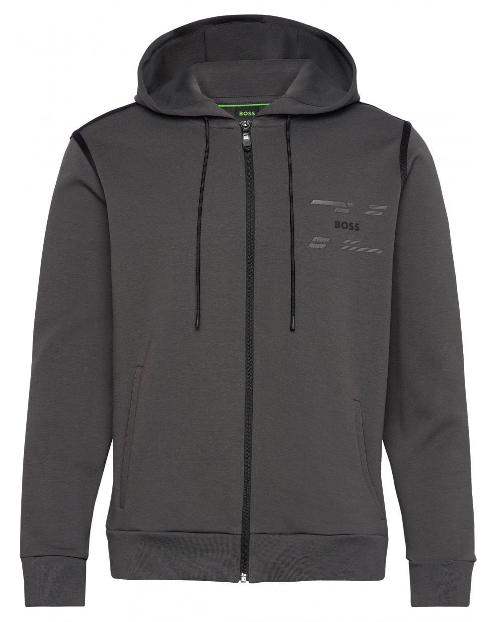 - Boss Mens Saggy Tape Logo Hoodie Dark Grey