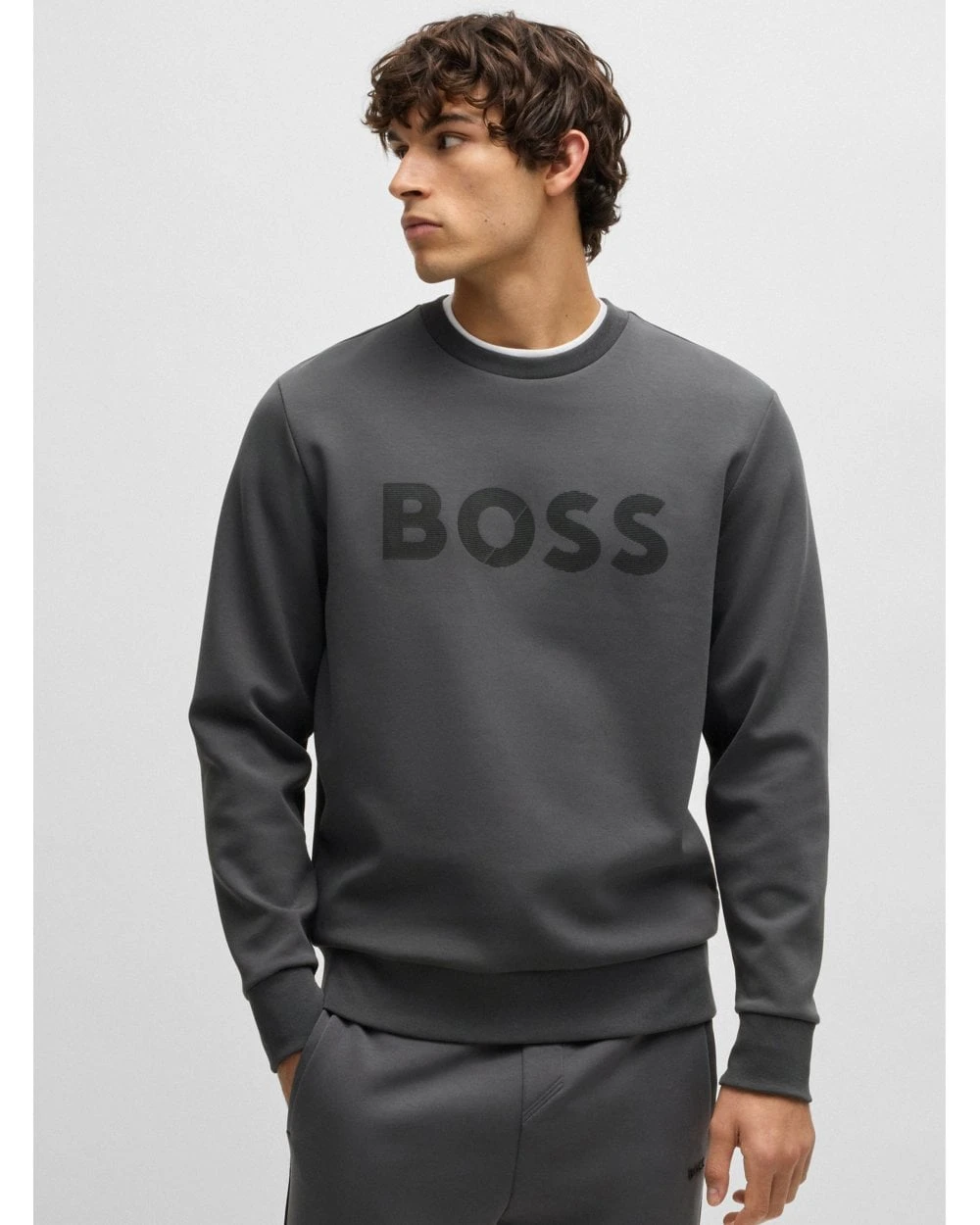 - Boss Mens Salbo Tape Logo Sweatshirt Dark Grey