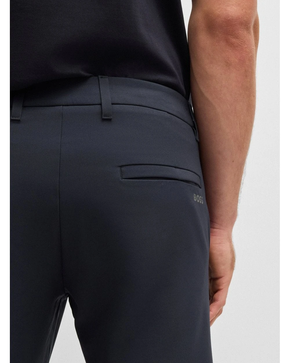 - Boss letter branding below the rear welt pocket