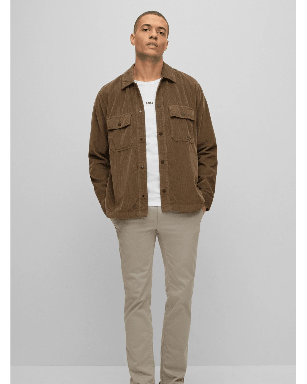 - Boss brand logo on chest