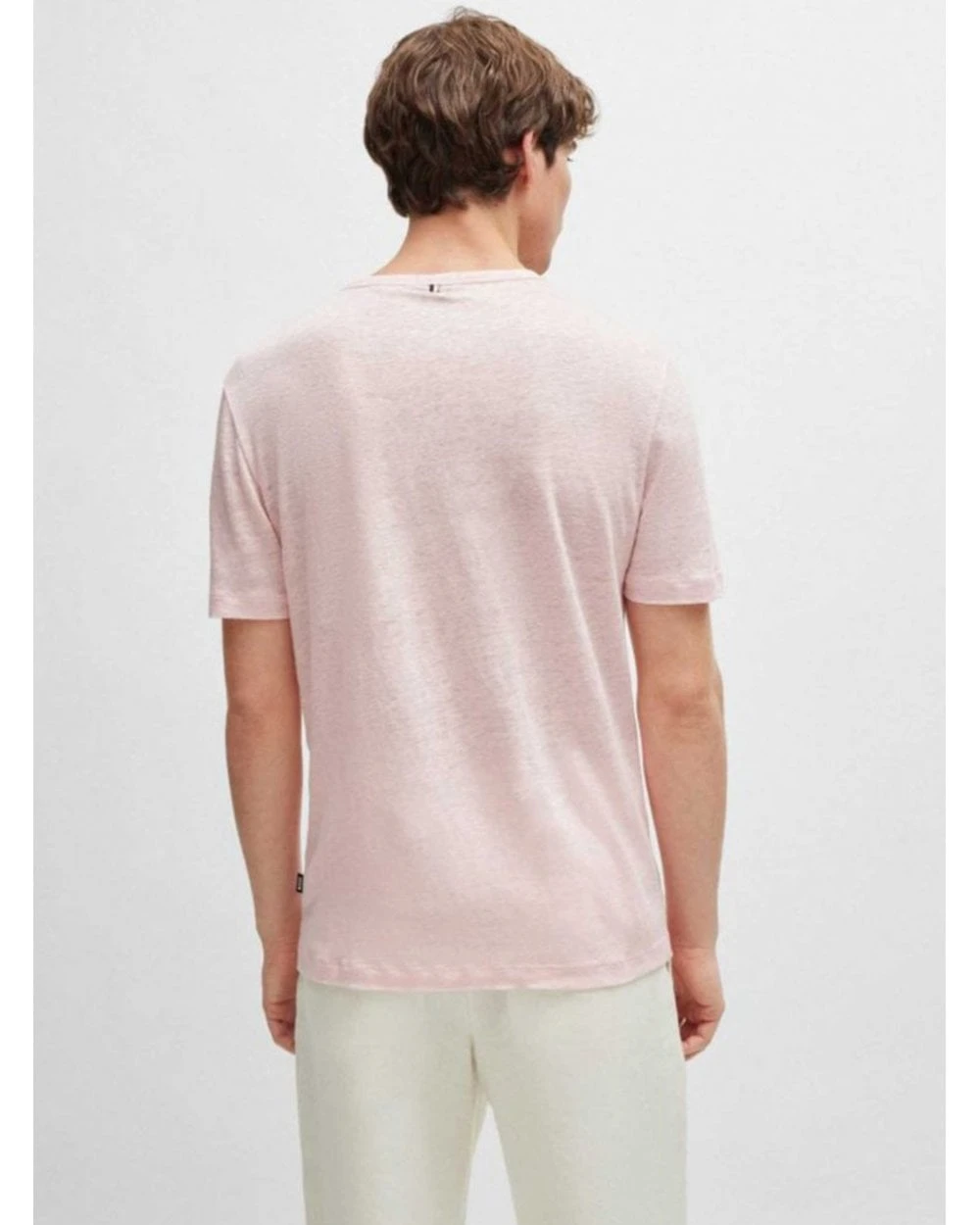 - Boss Mens Tiburt Linen T-Shirt Light Pastel Pink