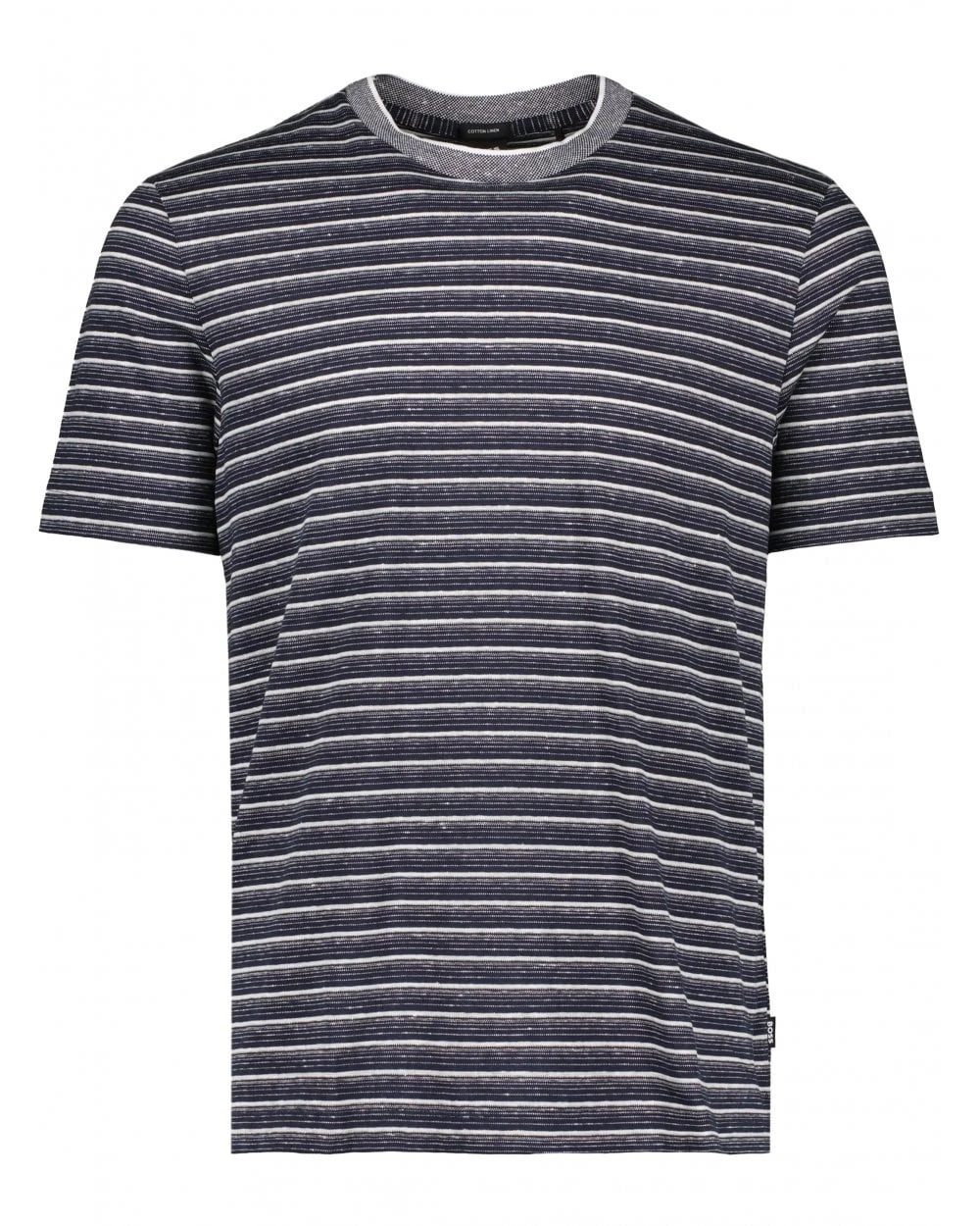 - BOSSÂ Mens Tiburt Striped Cotton/Linen T Shirt, Dark Blue Tee