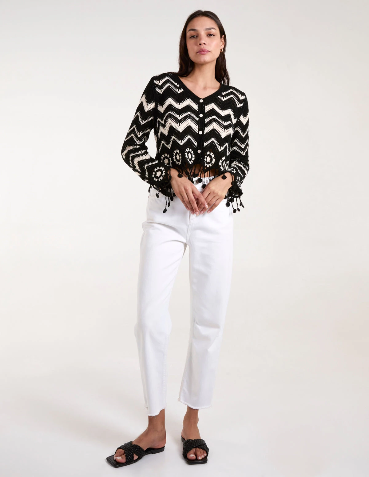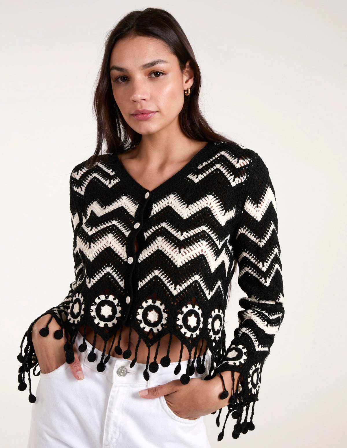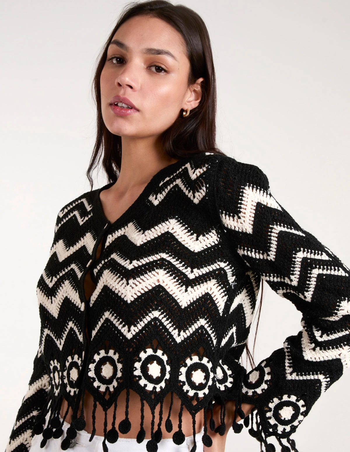 A chic bohemian layering piece for the summer, to help take you from the beach to the bar in style. With its stunning crochet detailing, be sure to elevate any vacay look wearing this.