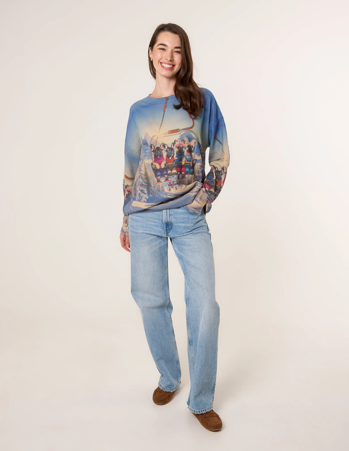 A jumper that will catch everyone’s attention. This cute dog jumper will add a fun twist on your everyday knitwear. Team with jeans and trainers  Â