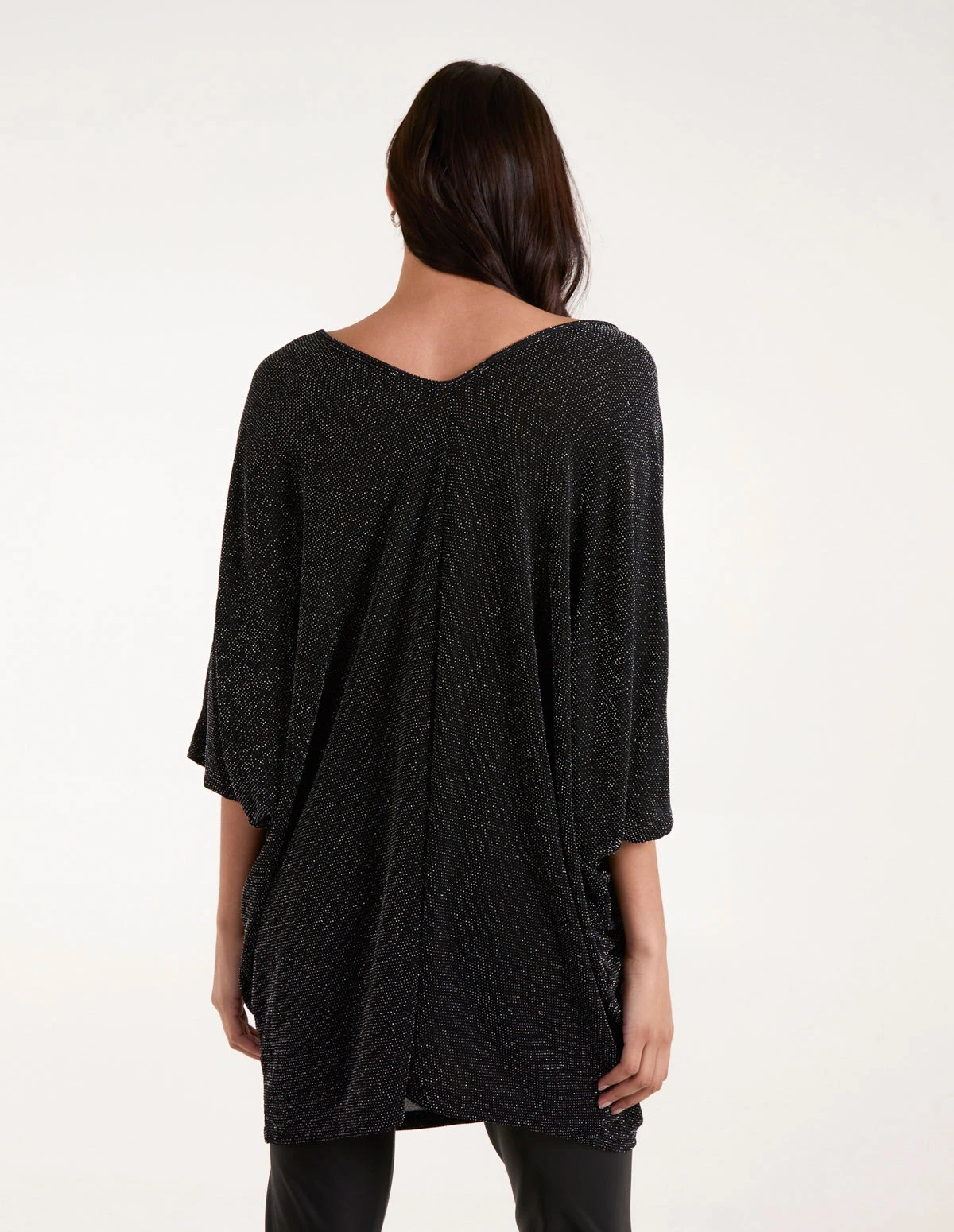 Instantly elevate a pair of jeans for a night out with this glitzy sparkly oversized top. Team with ankle boot heels and be ready for a fun night ahead. Â Â Â