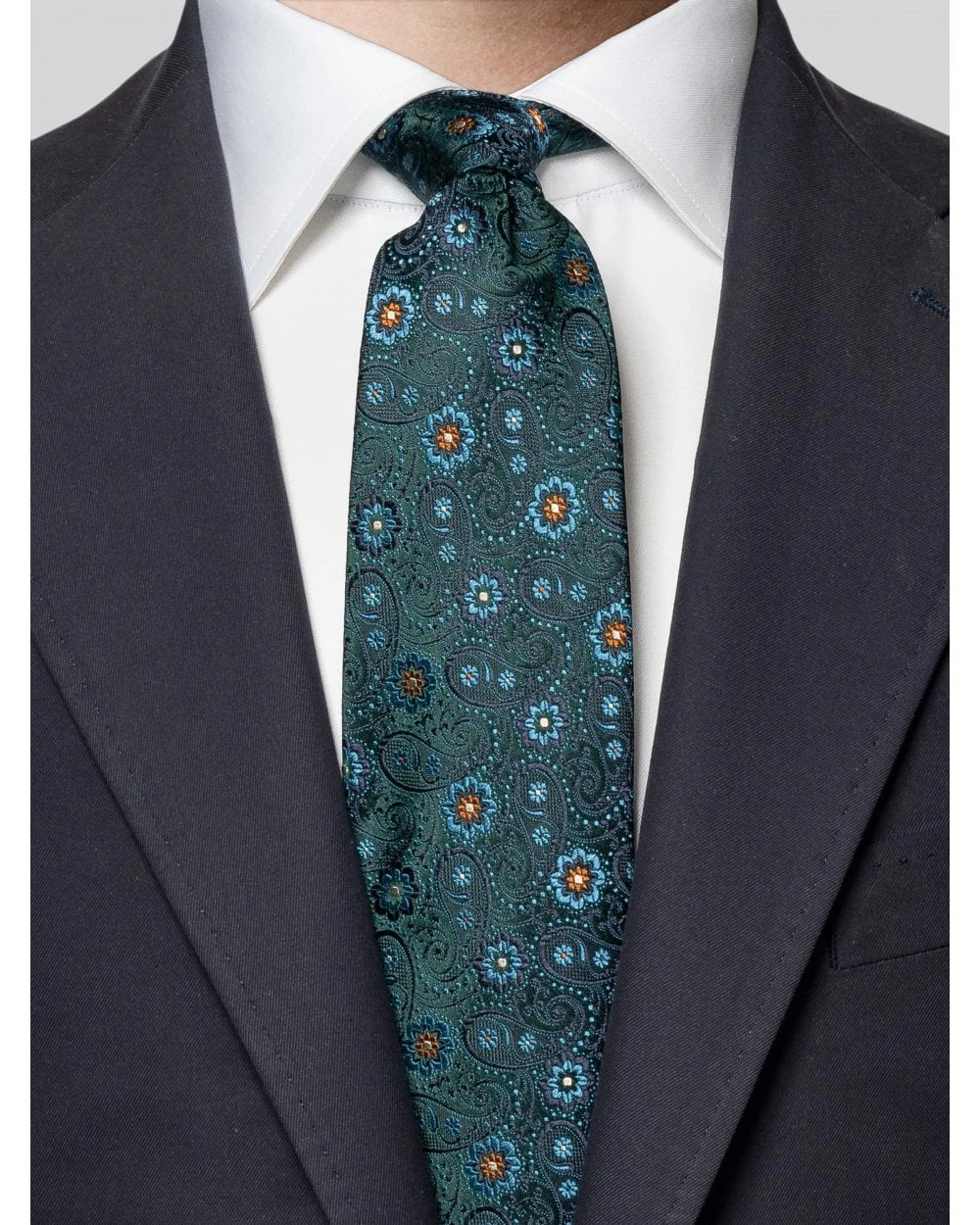 - Eton Mens Dark Green Jacquard Paisley Silk Tie