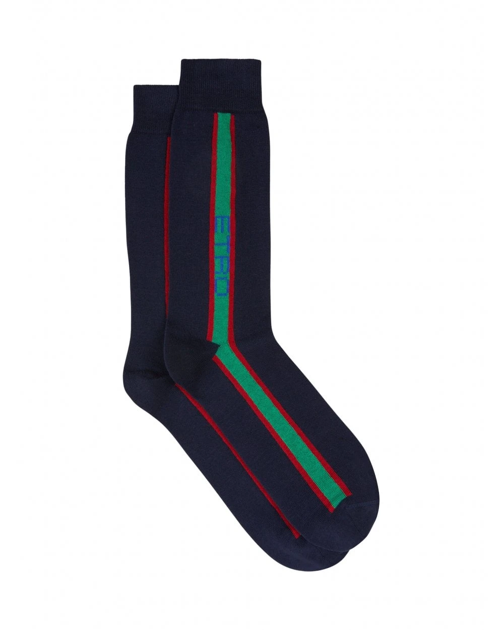 - Etro Mens Blue Vertical Stripe Logo Socks
