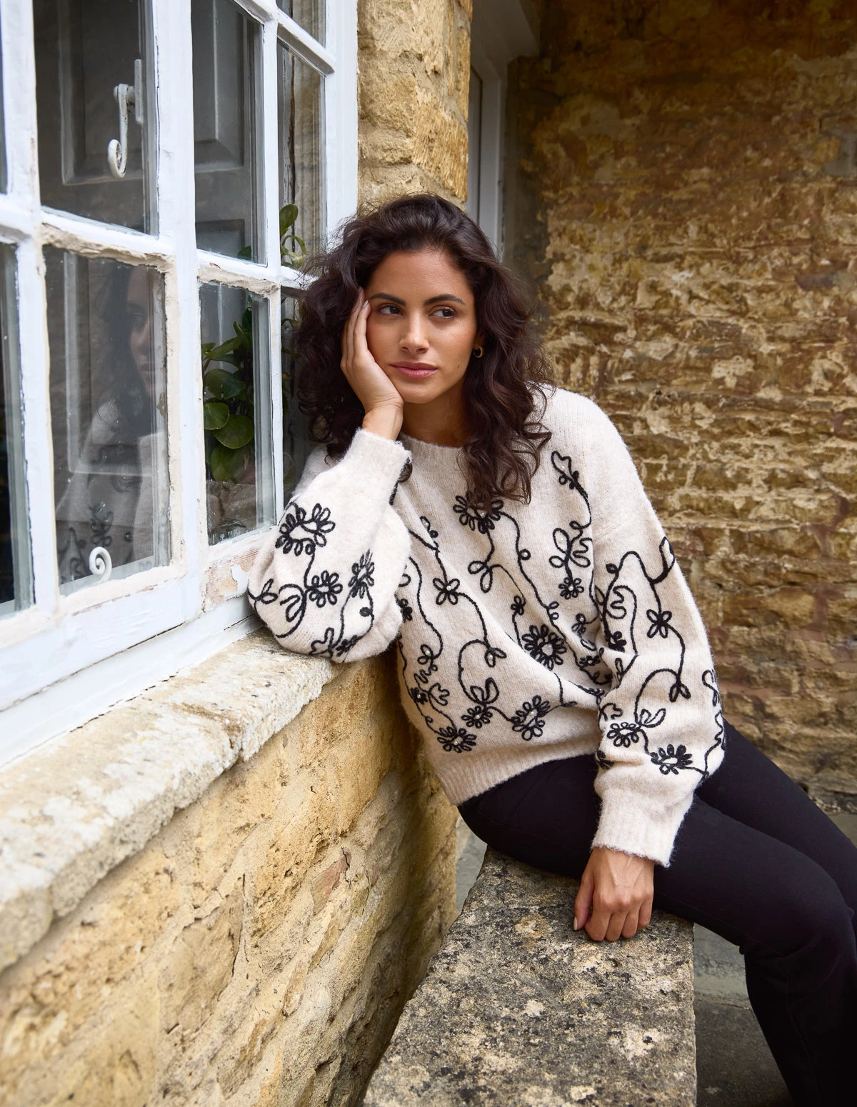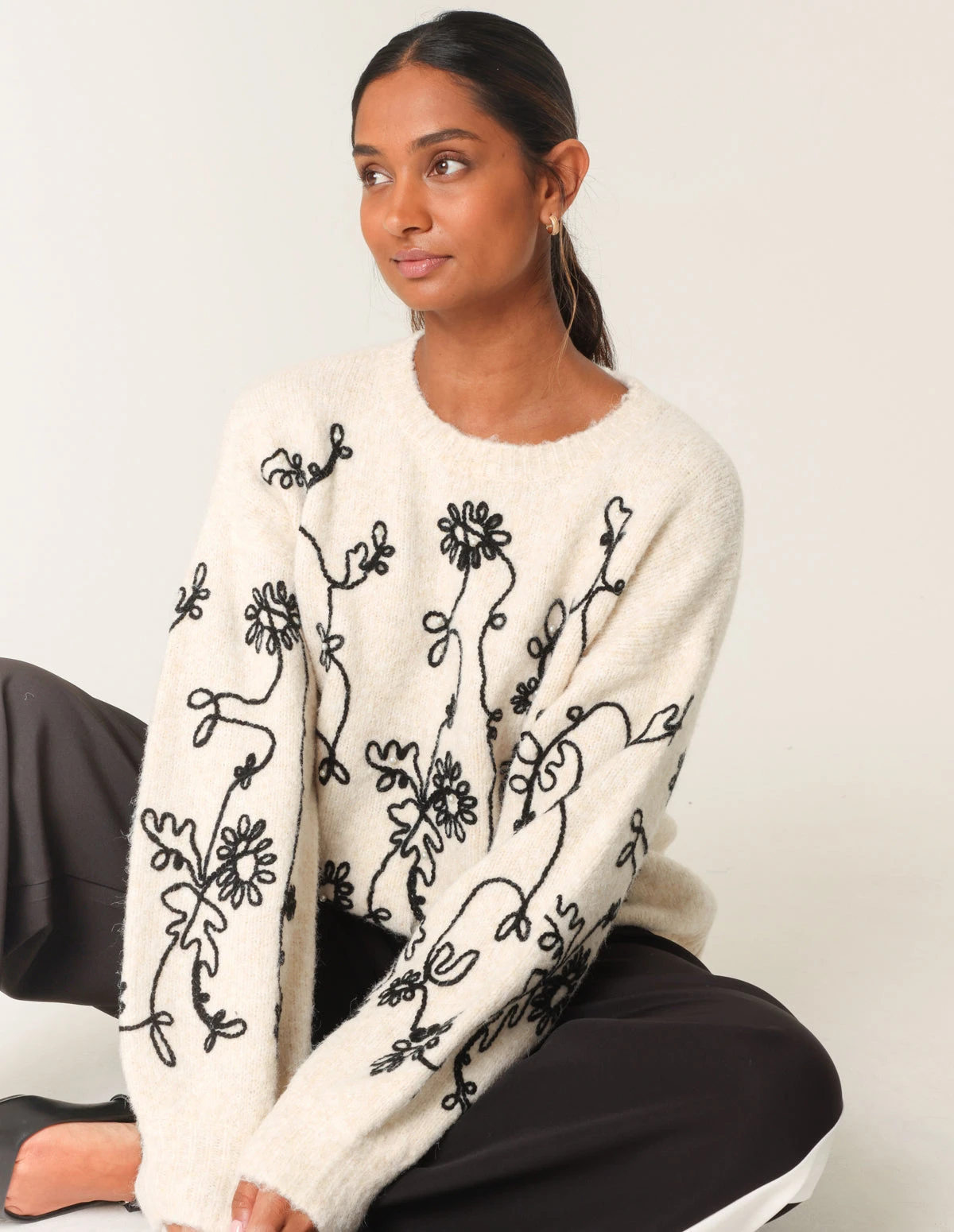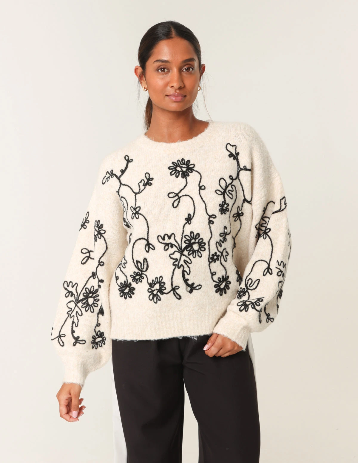 A Â sophisticated embroidery option to layer up in. Team with denim jeans, or a midi pleated skirt and be sure to looking fab.
