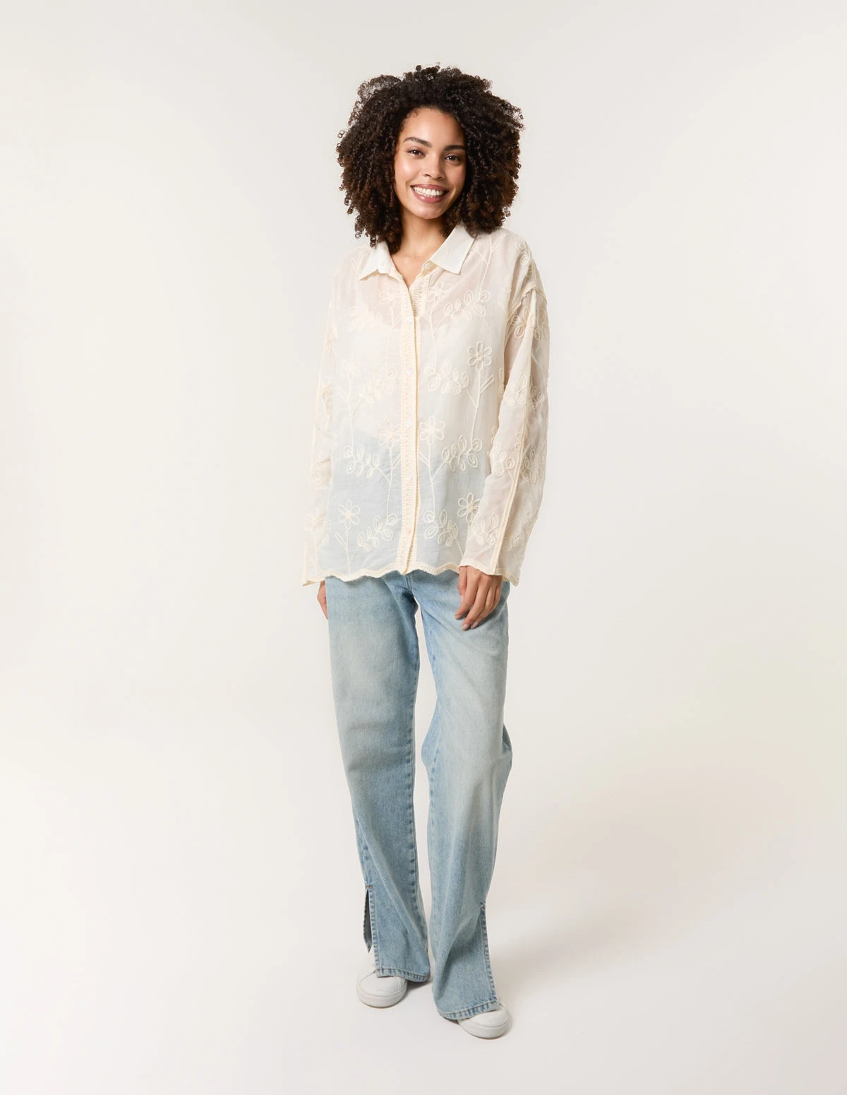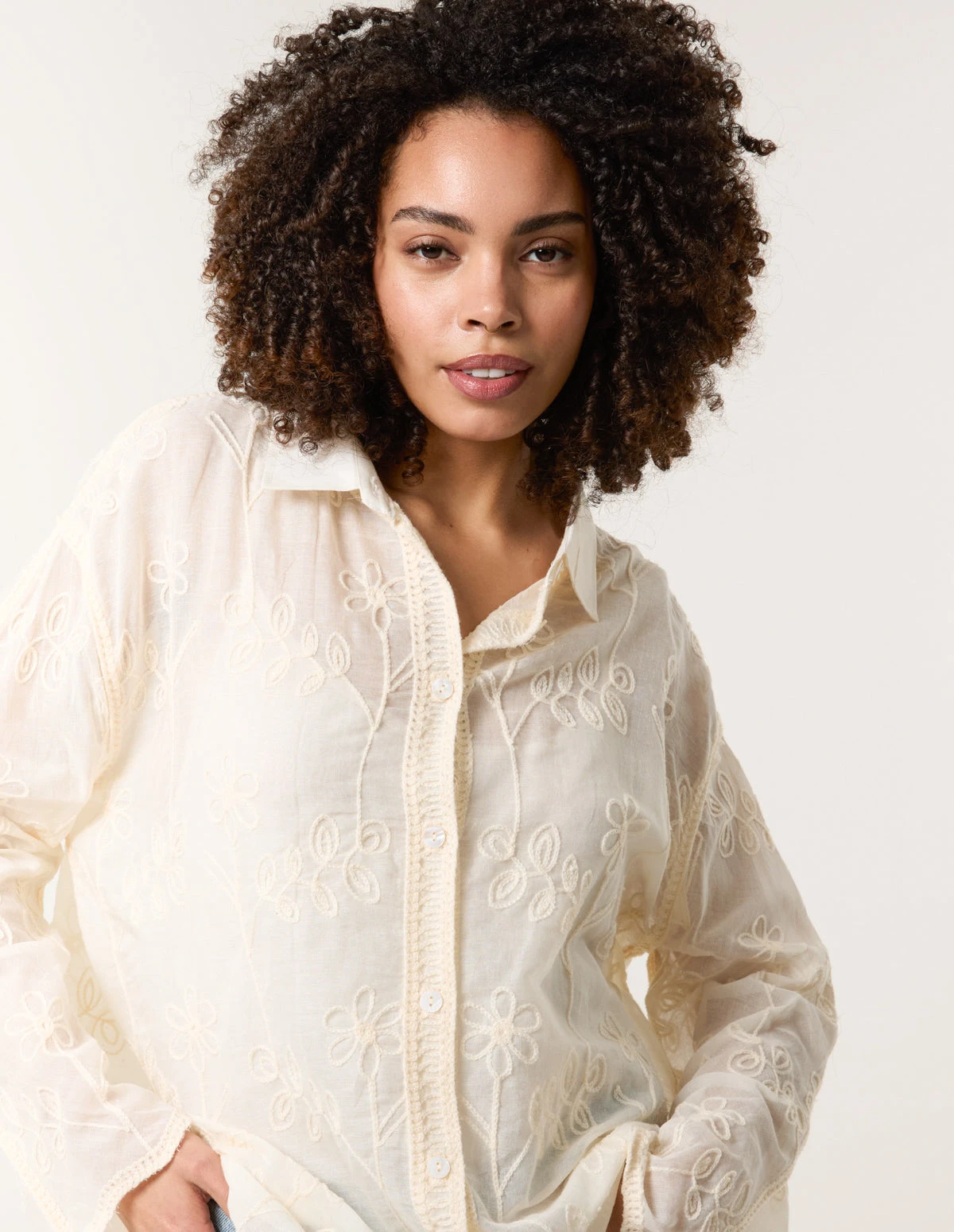 Get the best of both worlds in this light and airy embroidery shirt perfect for the office this summer time. As well as being teamed with ripped jeans and cow boy boots for the ultimate festival look.