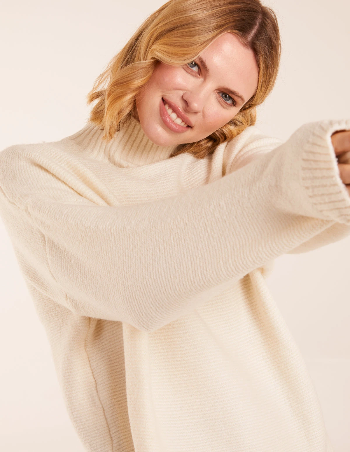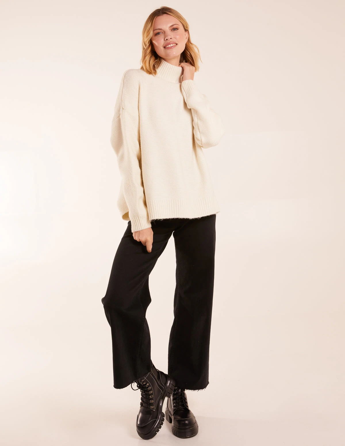 Grab this oversized jumper as soon as possible in time for those freezing winter days. The full length sleeves and high neckline are perfect for keeping your body warm! Wear it with skinny jeans for an office look.