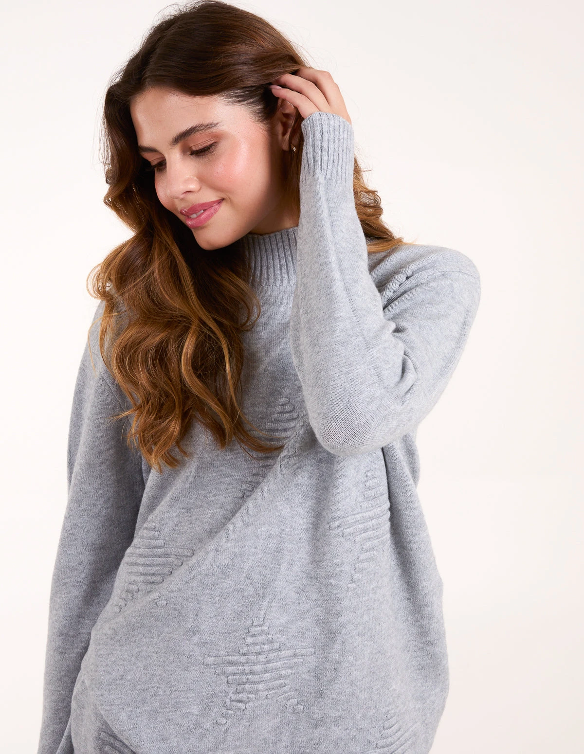 Keeping it fun this knitwear season! Team this star embossed jumper with jeans and trainers for a fun and cute kind of look.