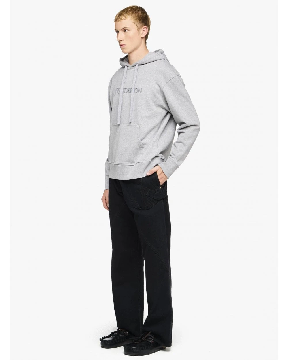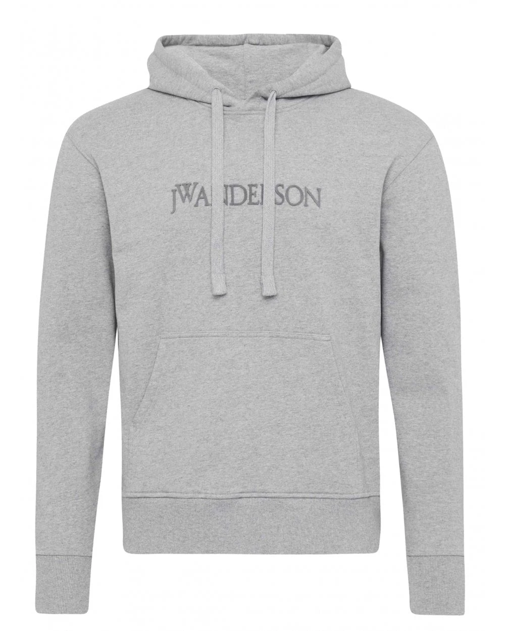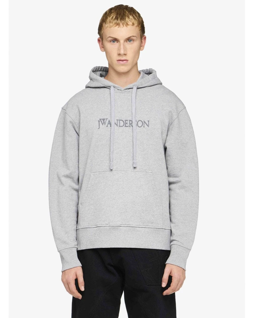 - JW Anderson Mens Embroidery Logo Hoodie Light Melange Grey