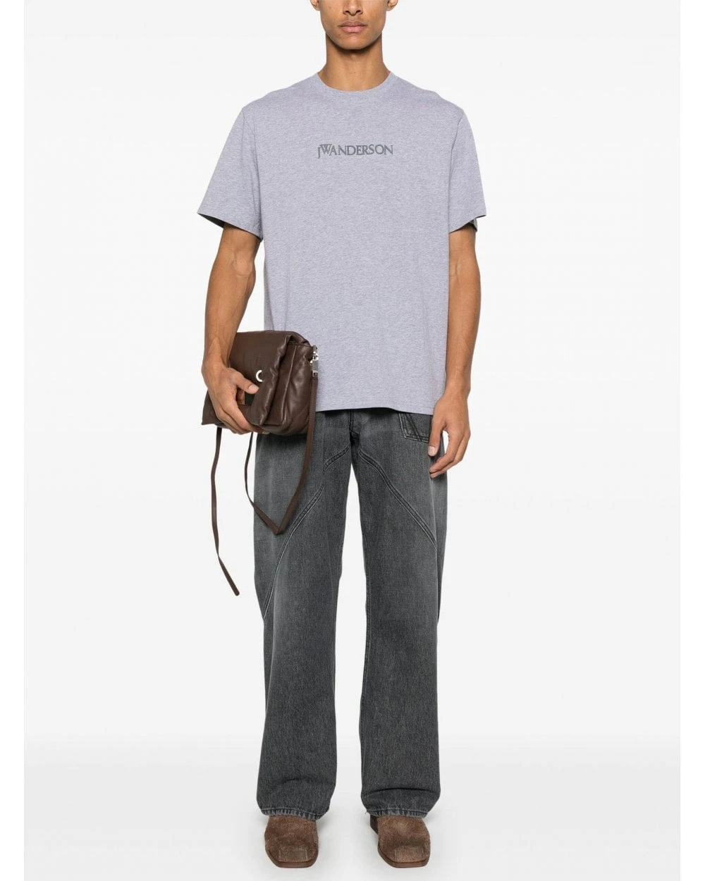 - JW Anderson Mens Embroidery Logo T-Shirt Melange Grey