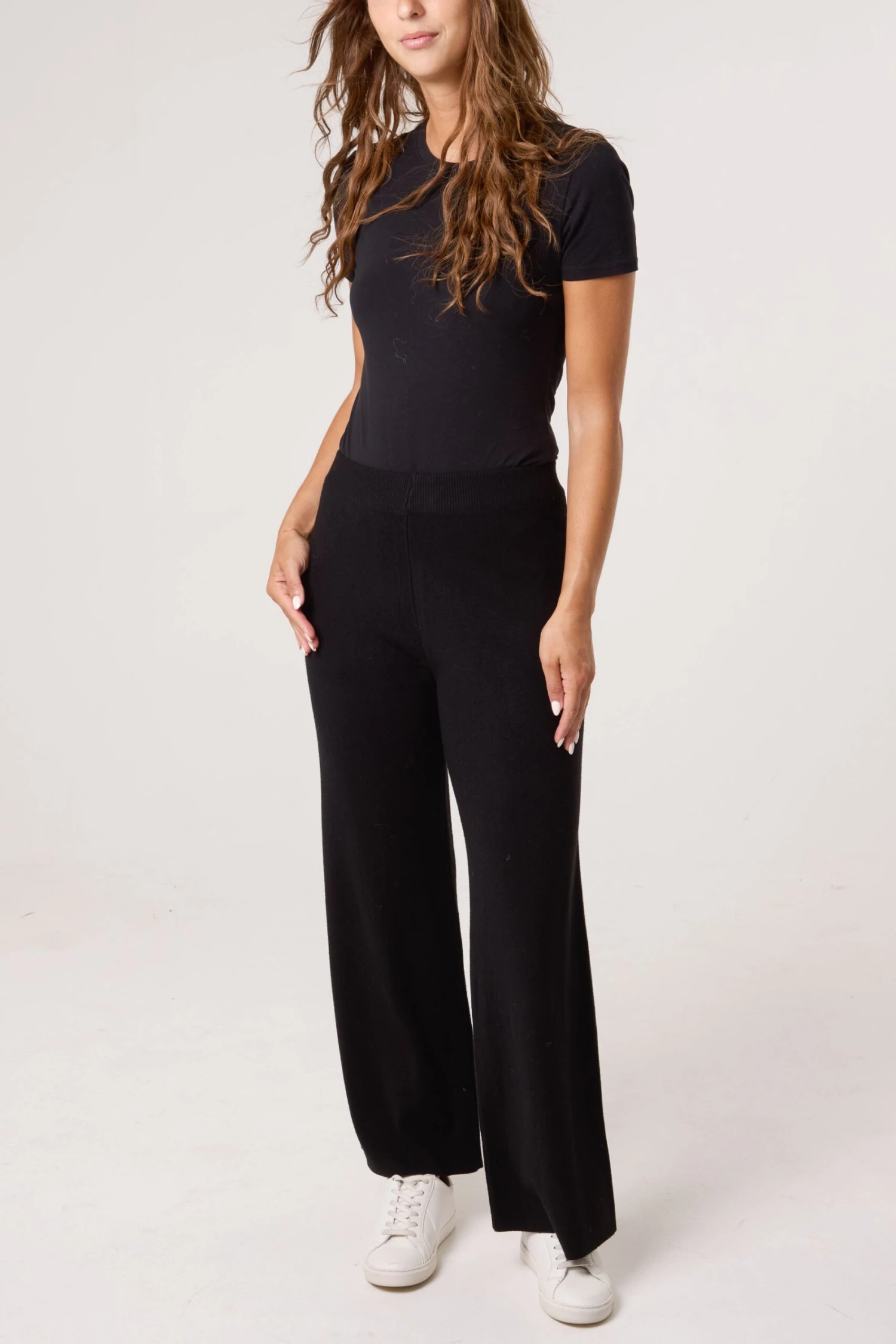 Flared knitted trousers that will help provide cosiness and warmth this AW! Team these wide leg trousers with a slouchy basic top and trainers. Â Â Â