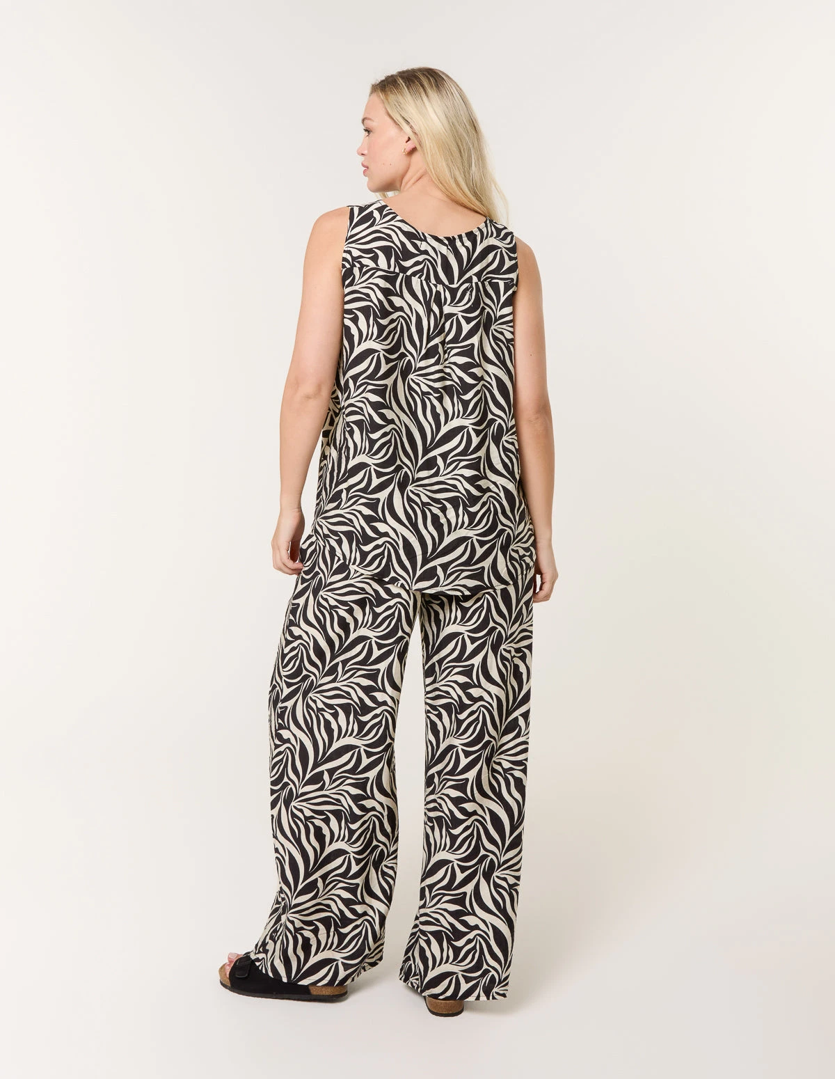 Effortless, breathable and lightweight, this fabric fits perfectly for summer Team this two piece set with black chunky sandals this summer. Â Â Â