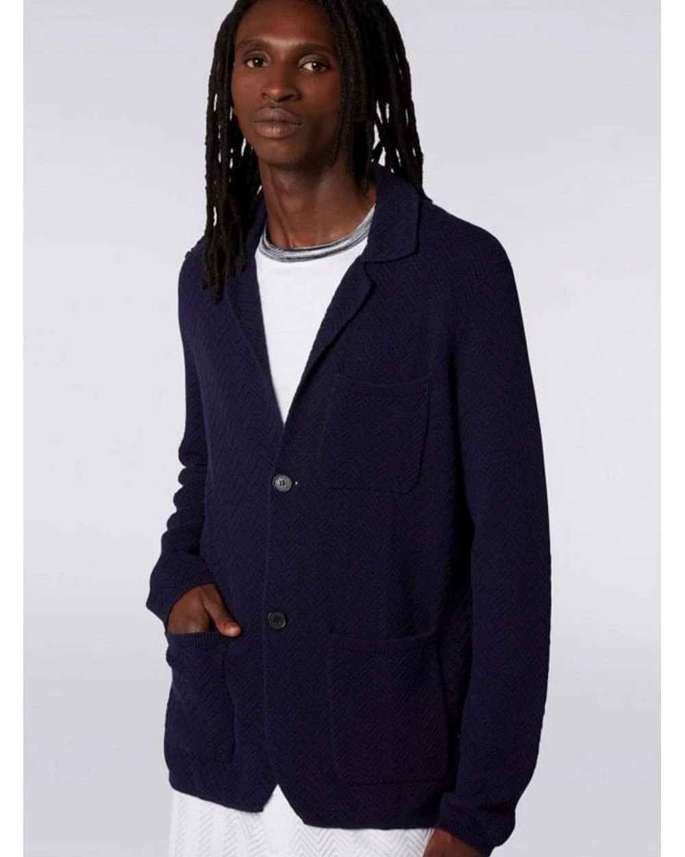 - Missoni Mens Chevron Stitch Blazer Jacket Dark Blue