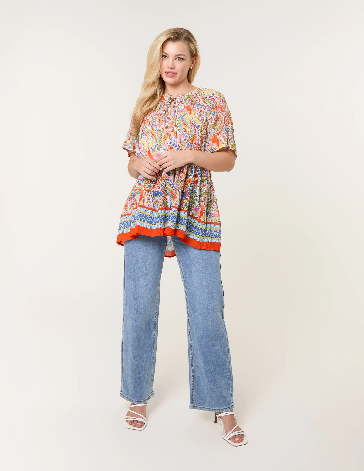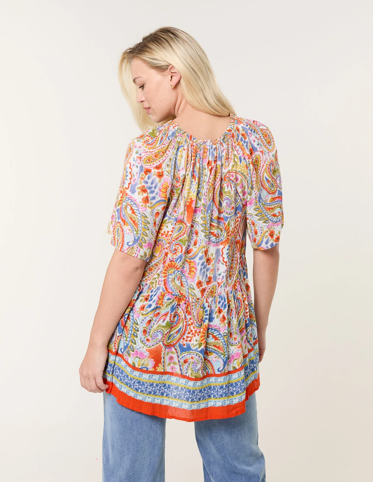 A pretty paisley bardot top that screams fun! With it’s endless bright colours and bold paisley print, it will sure bring a fun feel to your day.