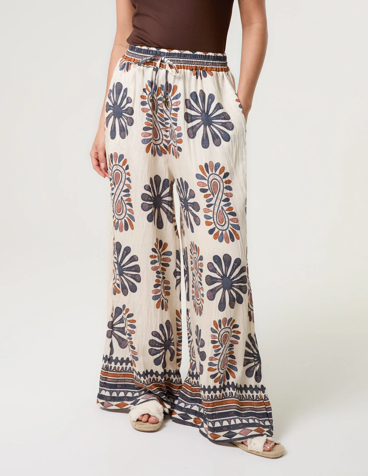 Dressing with a stylish summery edge in warm weather is easy with these airy linen-printed trousers. They’re shaped with an elasticated drawstring waist for complete comfort.  Â