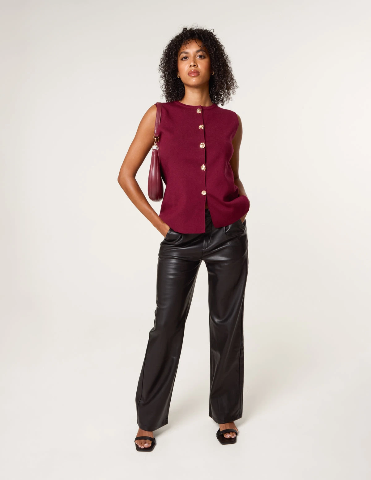These black leather-look trousers are sure to be worn on repeat for their versatile appeal. Team them with every day wear to jazz up your look. Or glam them up with a pretty blouse for the evening with friends. Â Â Â