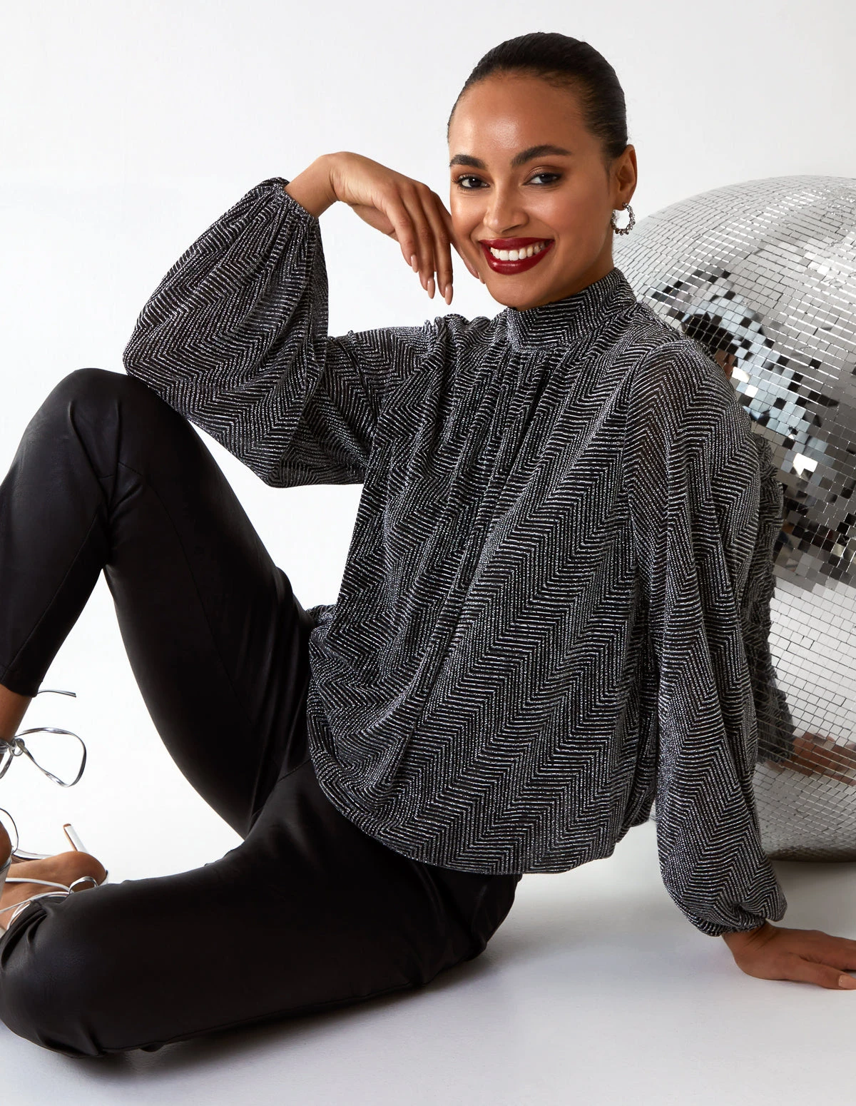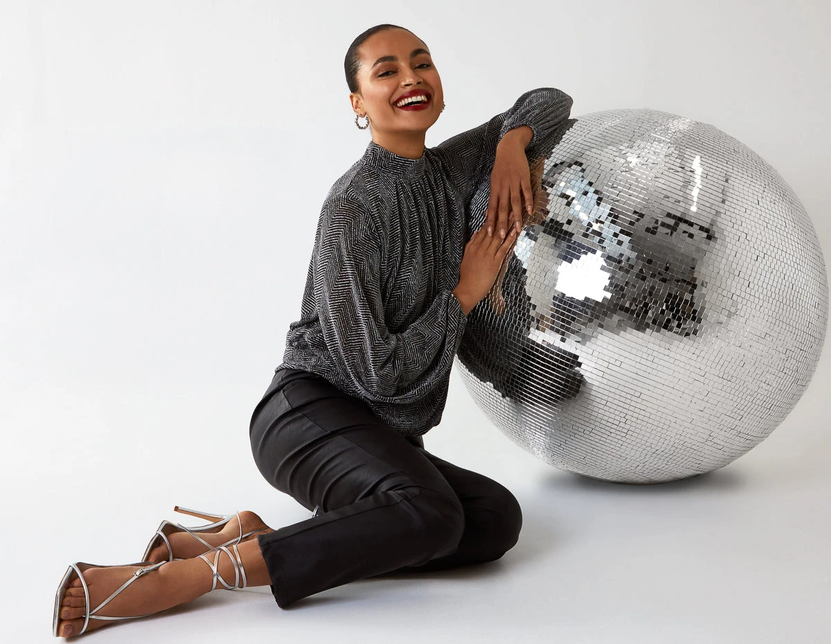 A warm, cosy, printed top with long sleeves and a high neck. That’s our Puffball High Next Top. Ideal for the workplace, or a lunch with family members, this top can be matched with white wide leg trousers and high heel boots.Â