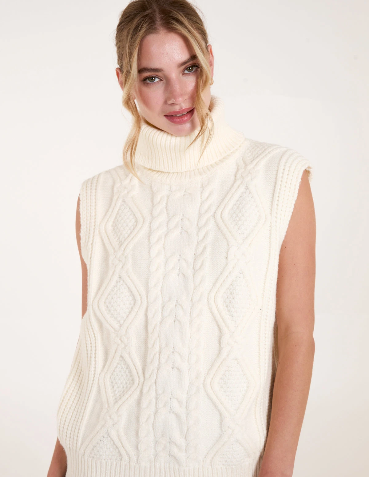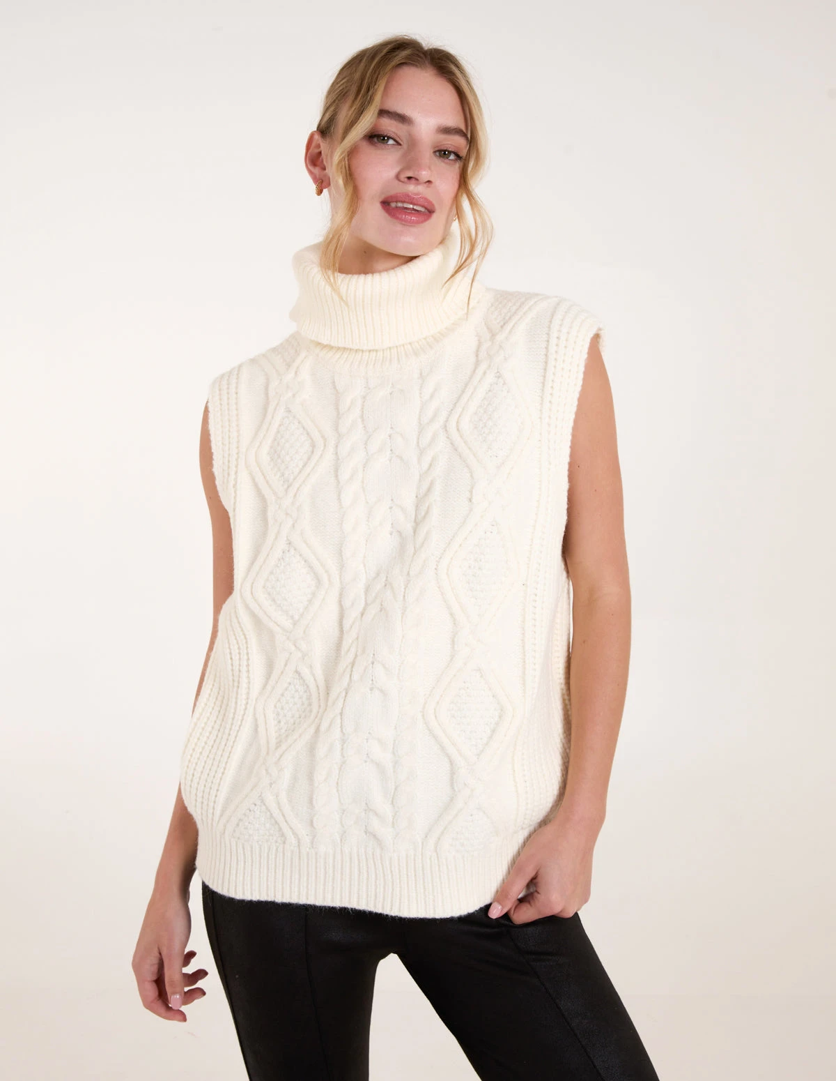 A cosy, soft chunky knit to layer over tops or wear on its own, with jeans and pumps. This chunky knitted jumper vest will give you outfit options all season. Â Â Â