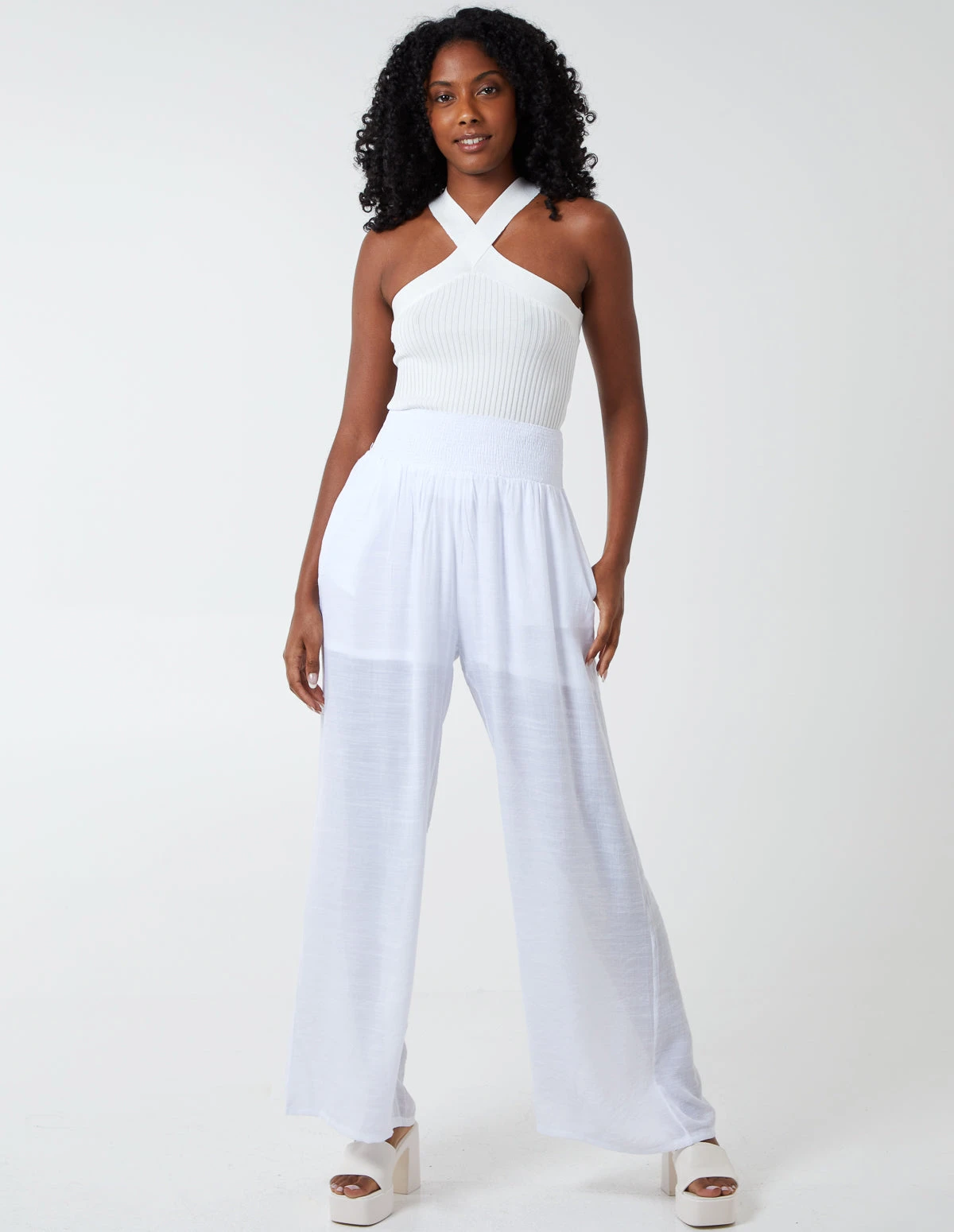 Go for comfort with this wide leg elastic waist trouser. It will be your fav new staple! Wear in the office, to pick up the kids, a comfy day at home, or out on the town. This versatile piece could be worn with trainers and a comfy knit or dress it up with a glitzy top and heels!Â
