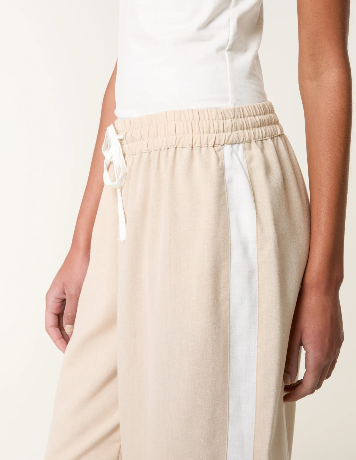 Take your casual wear to the next level in these linen stripe hem trousers. Team with a basic tee and white trainers. Â Â Â