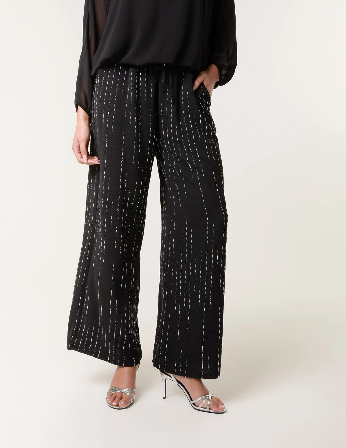 Let your trousers do the talking this season. With our diamante flared leg trousers, a great buy that will ensure to create a glam kinda look season after season. Â Â Â