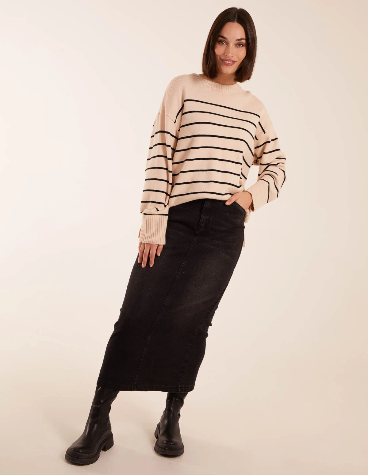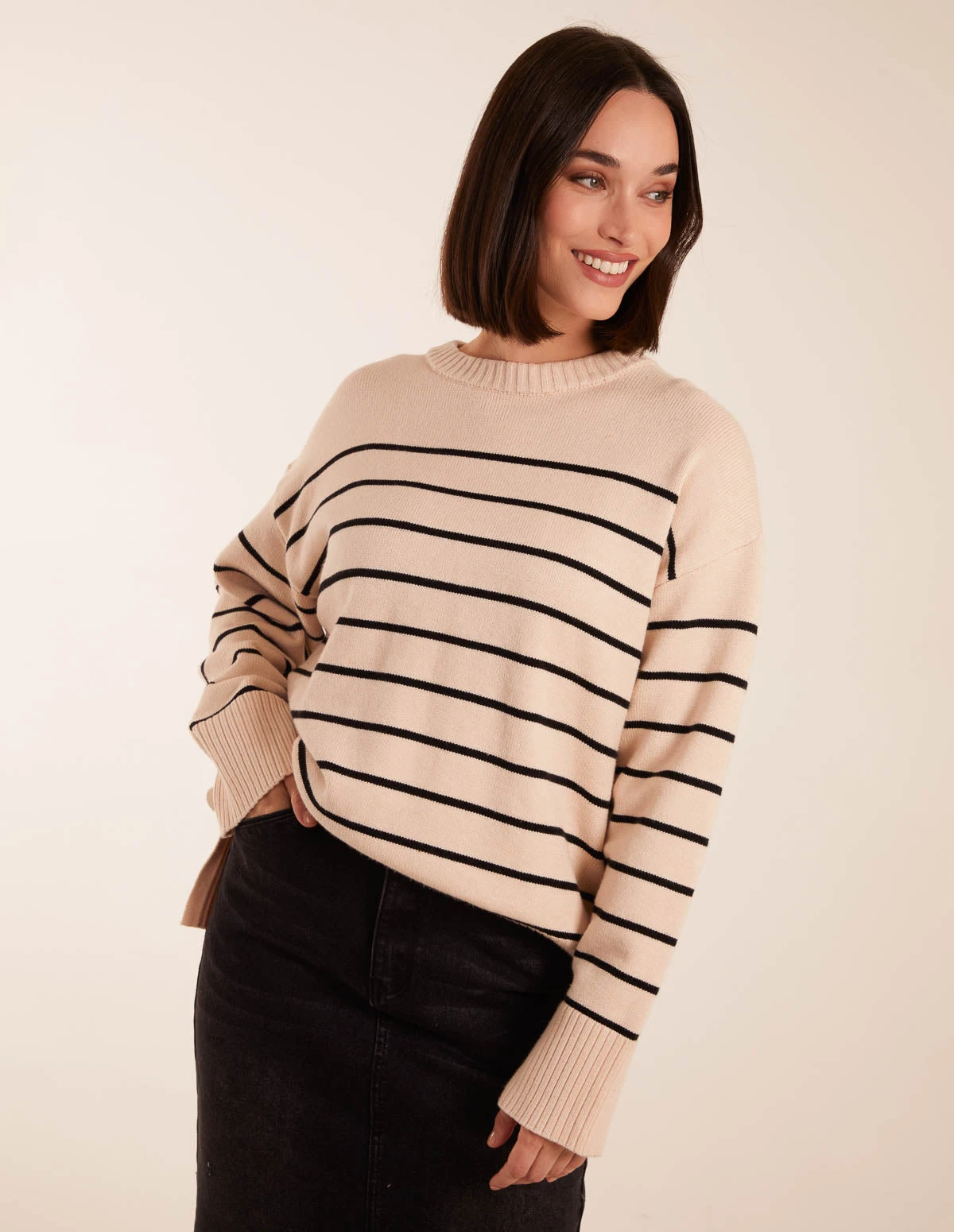 Feel great this season and look stylish with our hin Stripe Crew Neck Chunky Jumper. This is perfect to keep you cosy at work and beyond. Pair with black trousers and smart shoes for a cosy work style.