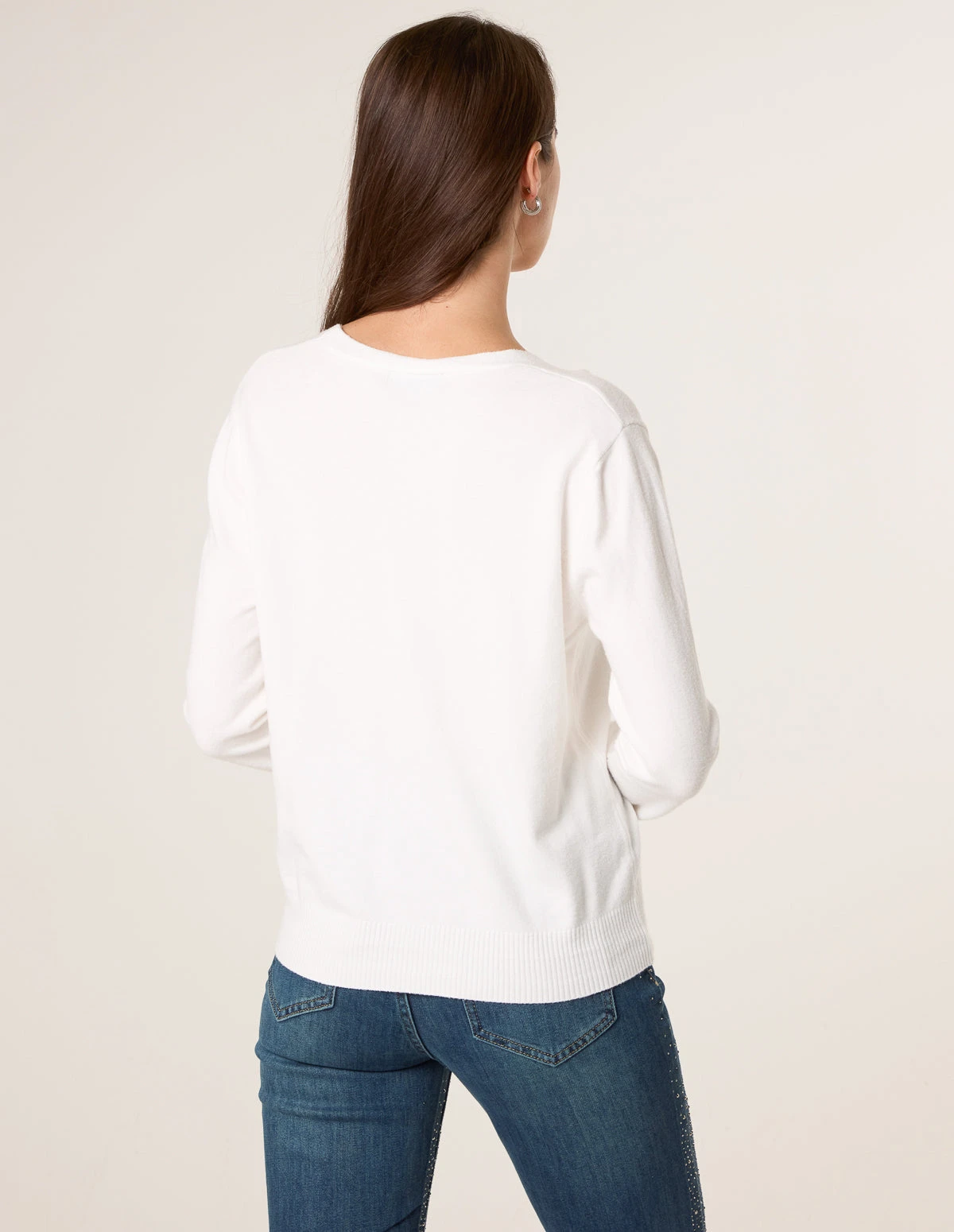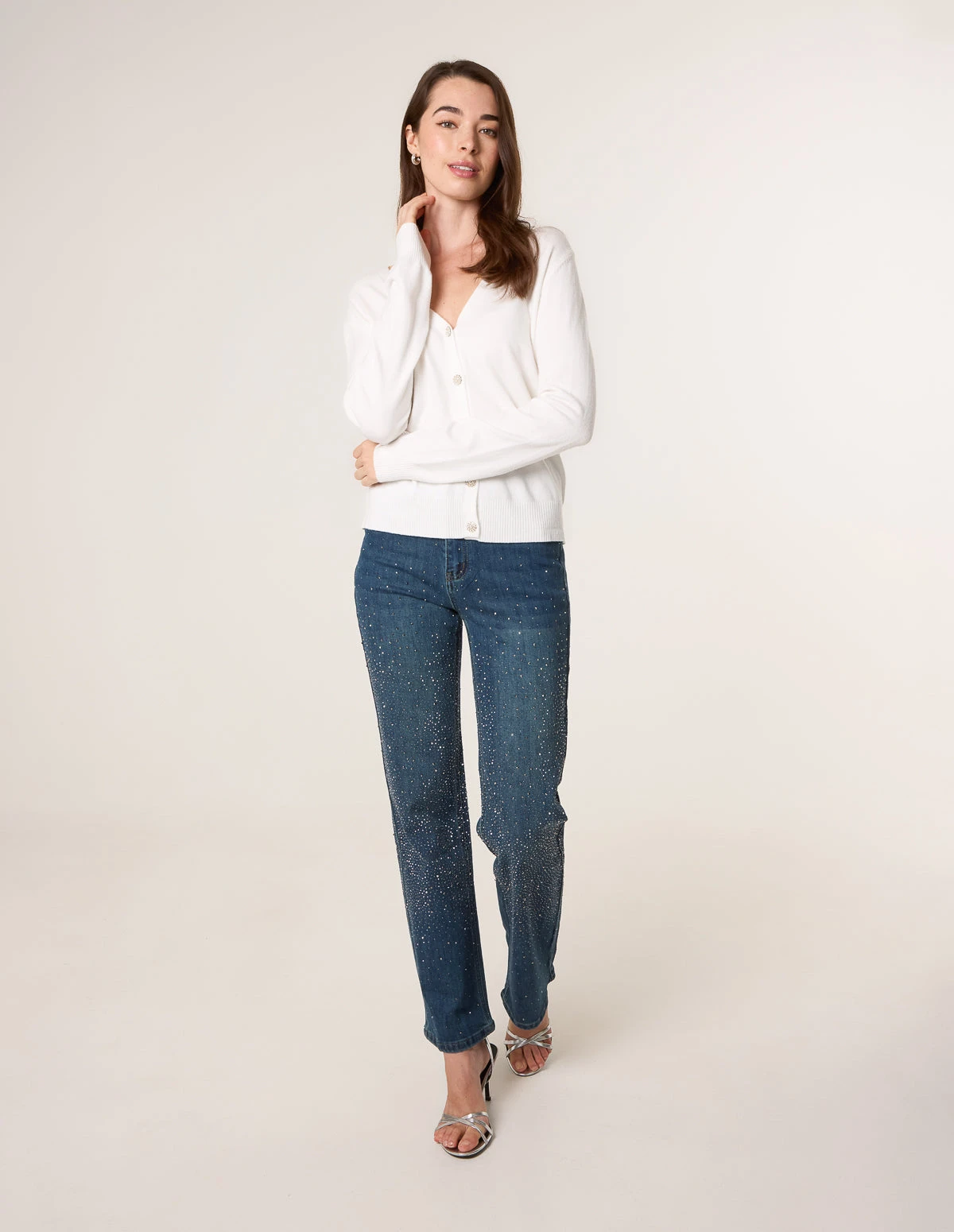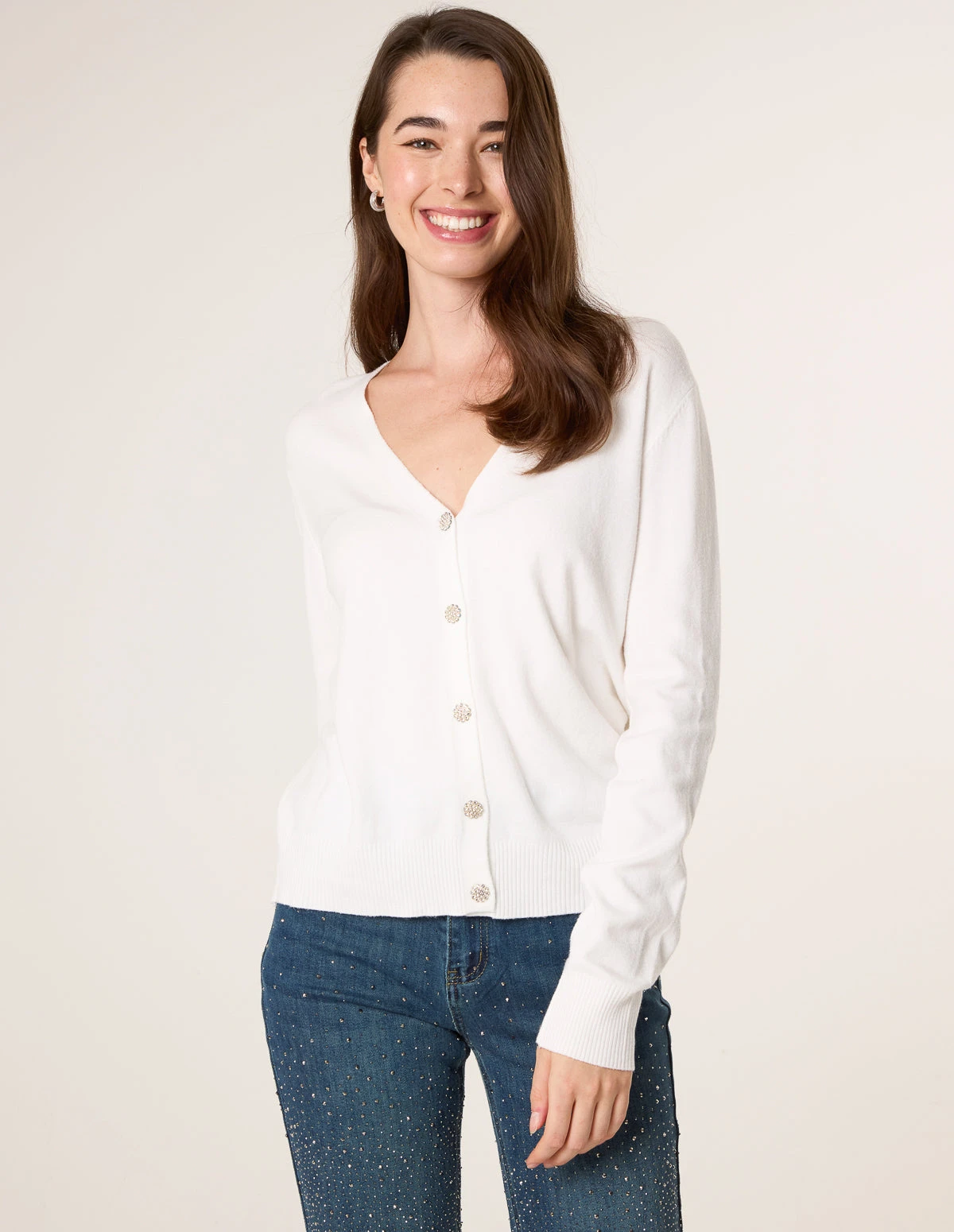 A cute and cosy cardi for those colder days this season. A perfect layering piece for the office. With it’s diamante detailed summarys giving a touch of glam. Â Â Â
