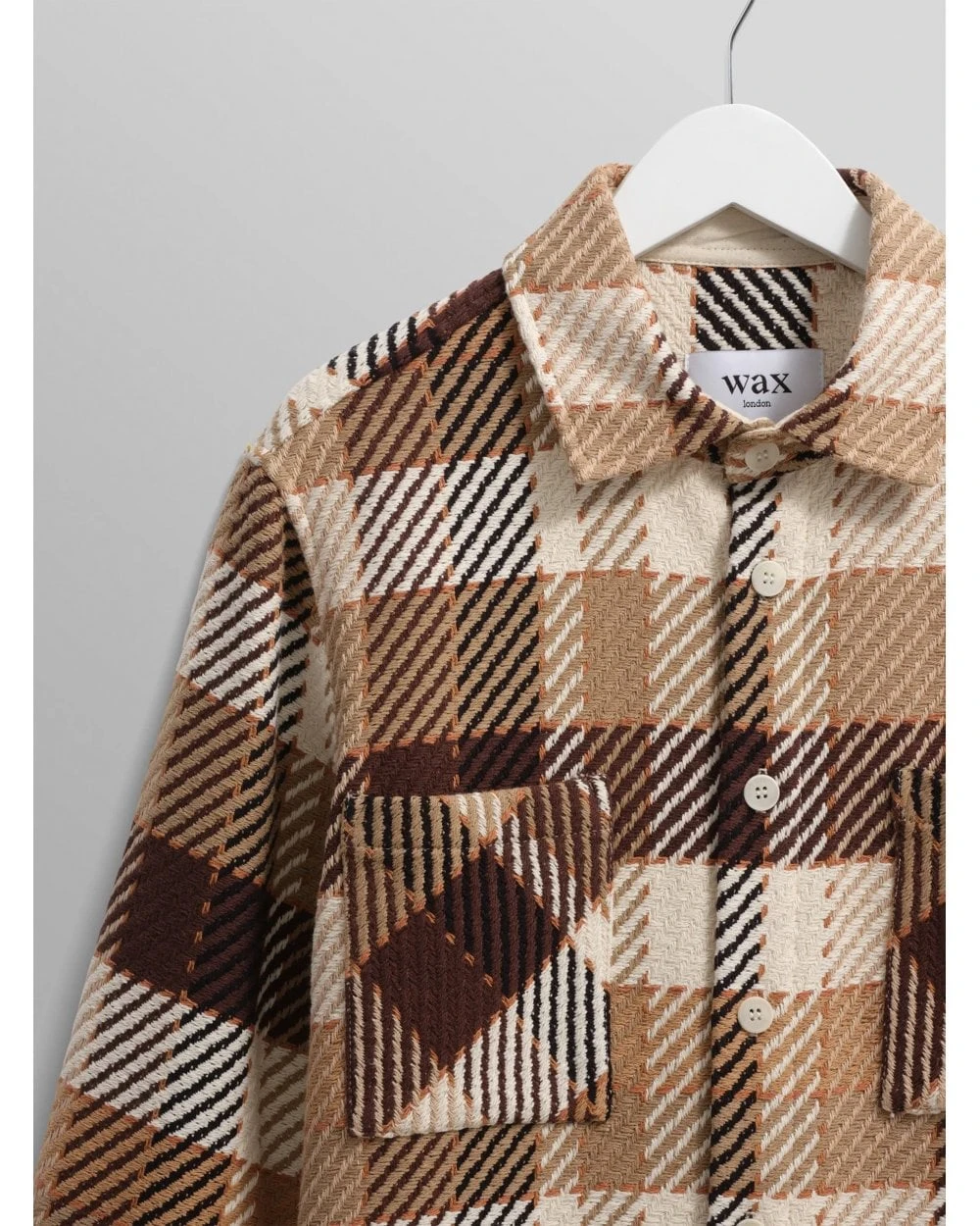 - Wax London Mens Whiting Pike Check Overshirt Beige/Brown
