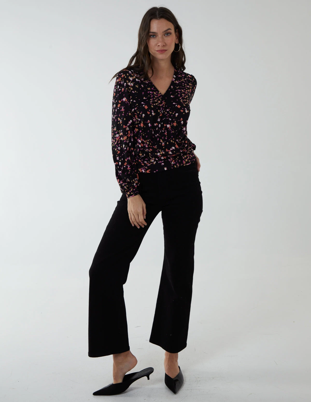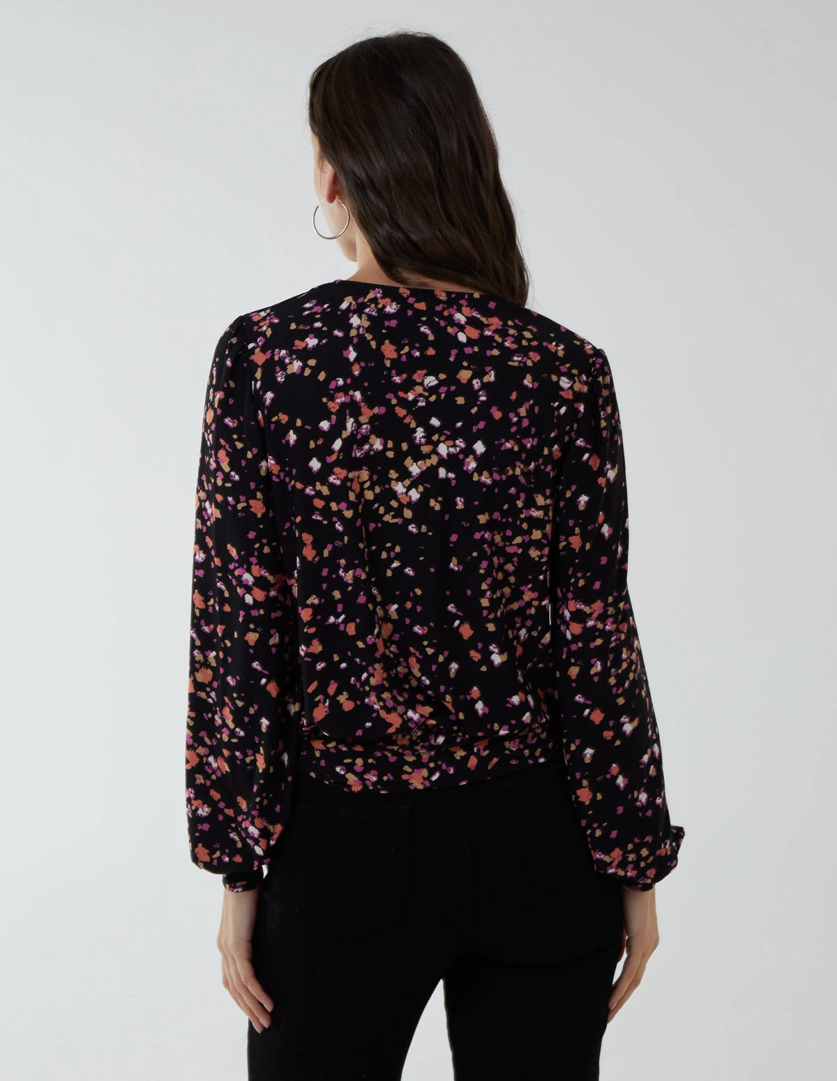 Get stylish in this Wrap Front Deep Hem Band Top. Style with chunky boots for the ultimate winter style.Â